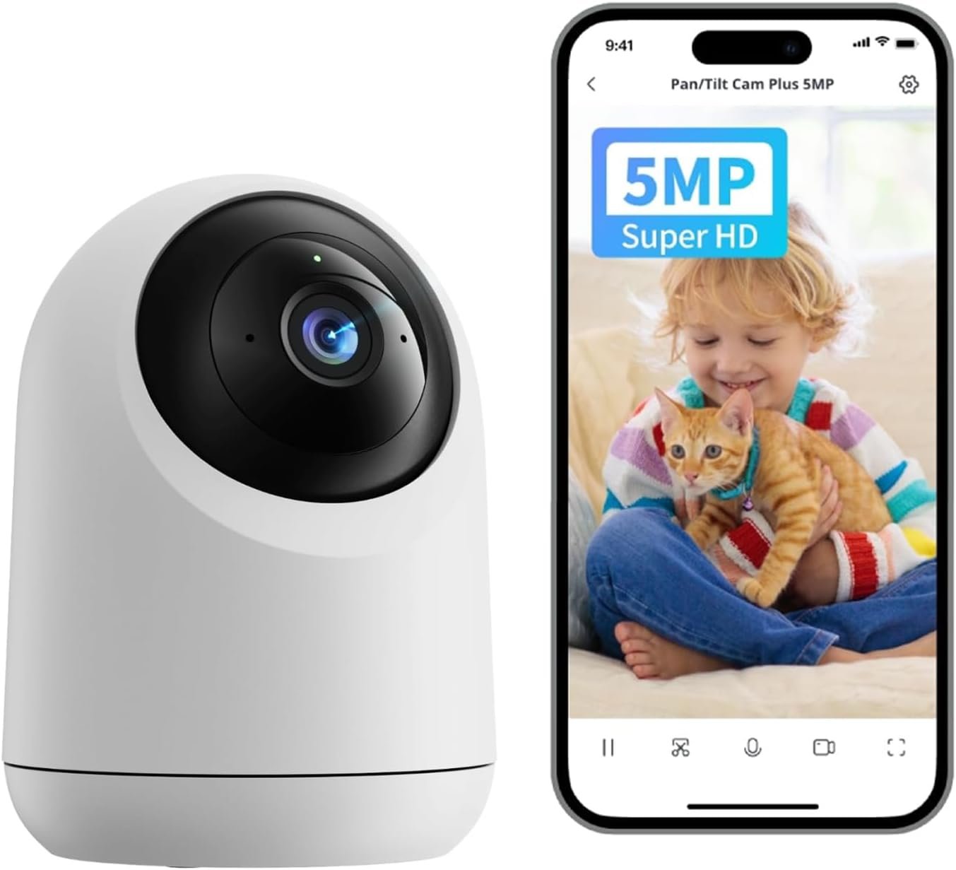 5MP Ultra High-Def, For a Clearer Kind of Protection: Pan/Tilt Cam Plus 3K features a 5MP pixel lens paired with a high-res lens module that can capture clearer images and more realistic colors, making every move visible. Its perfect for watching over pets, loved ones or even insects and plants. Supports 2.4GHz Wi-Fi and can be set up in just a few minutes.