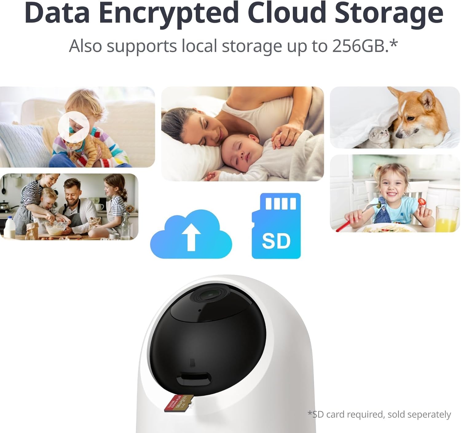 SwitchBot 3K/5MP Indoor Camera – Pan/Tilt Baby & Pet Monitor, 2.4G Wi-Fi, Night Vision, 2-Way Audio, 360° Tracking, Privacy Mode, Alexa, Cloud & SD Storage.