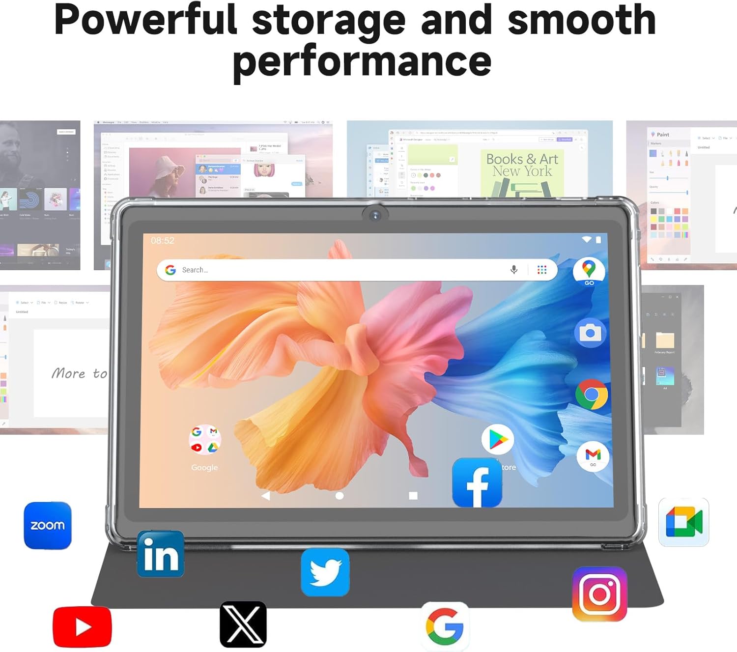 【Portable Compact Design】7-inch small and lightweight body, easy to hold with one hand and carry around, suitable for home, on-the-go and daily casual usage scenarios, This tablet is best choice for parents, friends, and children. Such as Father’s Day gift, Valentine’s Day, Birthday and Christmas