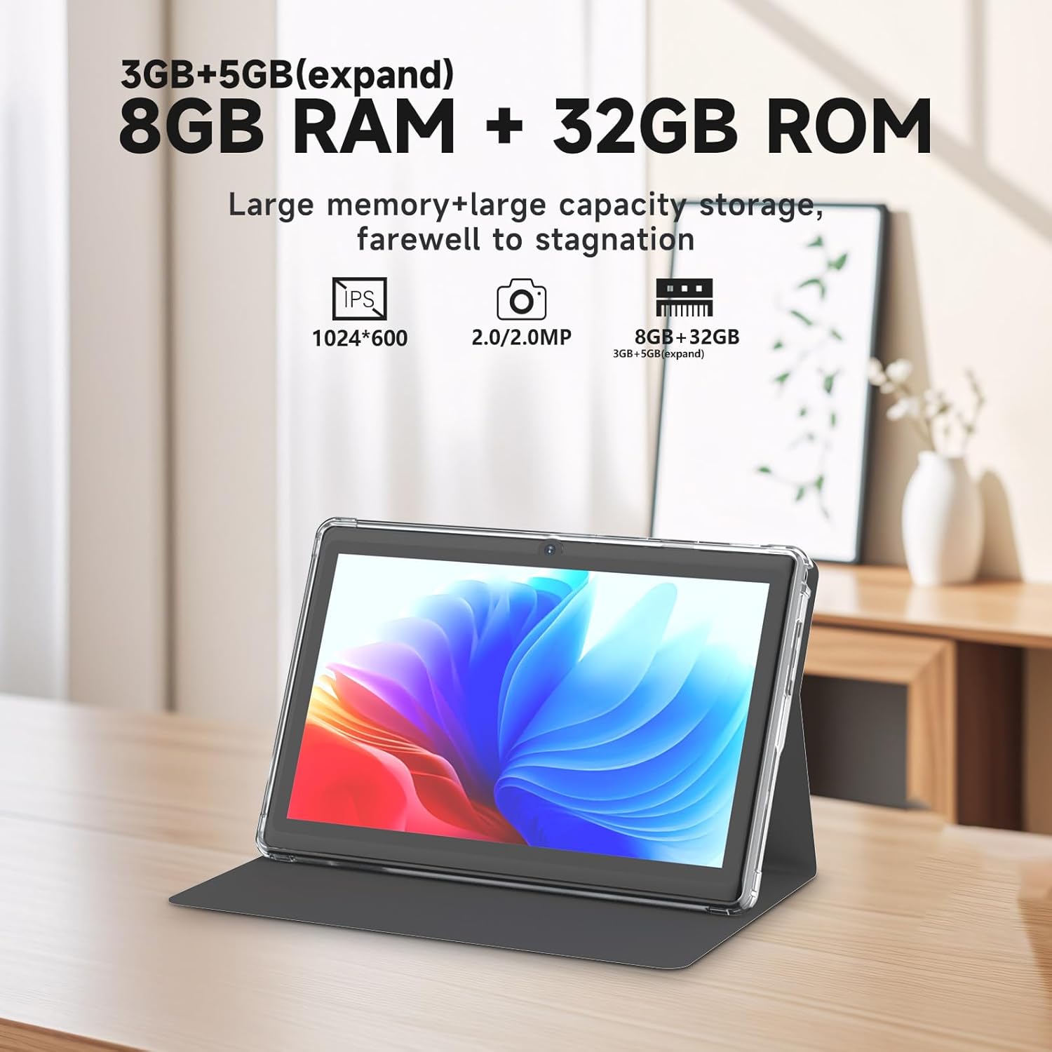【【 Included Protective Case】- Equipped with a 7-inch touch screen with 1024*600 resolution, this tablet can display photos clearly and watch videos smoothly, which is enough to cope with daily needs.
