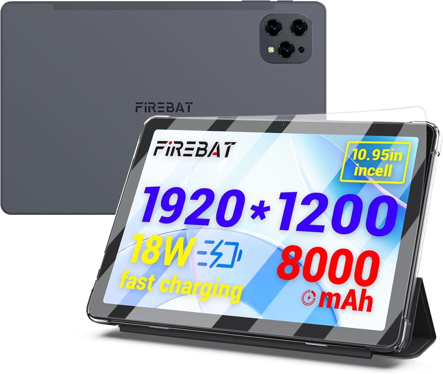 ❤️【Large In-cell Touch Screen】FIREBAT 10.95-inch tablet is equipped with an In-cell IPS touch screen with a resolution of 1920×1200, which is more sensitive to touch and thinner. The aspect ratio is 16:9, the colors are vivid, the images are clear, and it is equipped with a 5MP front camera and a 1300MP rear camera for a better viewing and usage experience. It is equipped with a factory-applied protective film and a customized protective case to better protect your FIREBAT tablet.