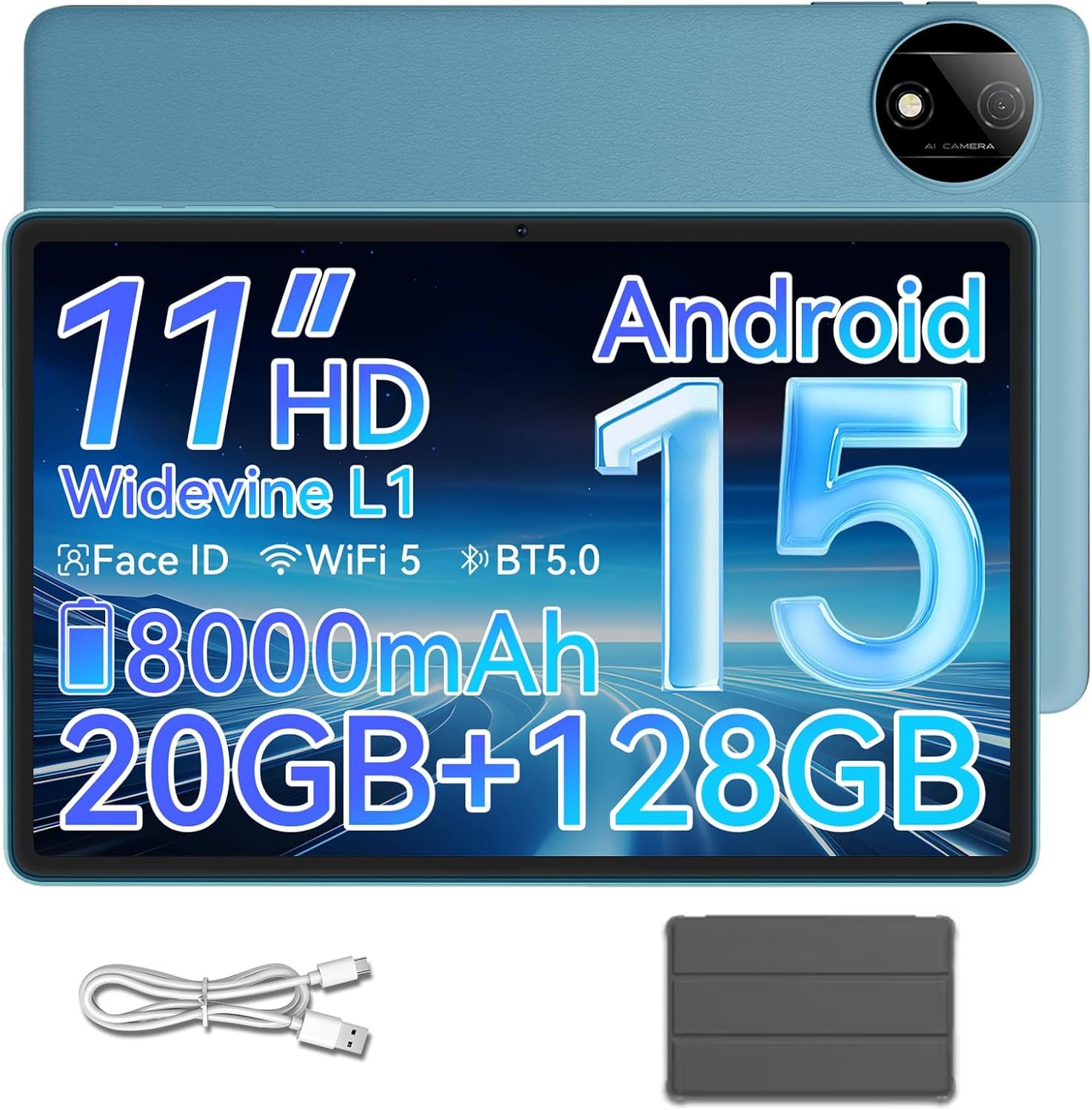 Tablet, Android 15 Tablet with 11 inch LCD Display,20GB RAM + 128GB Storage 1TB Expand, T7200 Octa-Core Processors, 8000mAh, Widevine L1, GPS, Dual Camera, WiFi 5, BT5.0 (Blue)