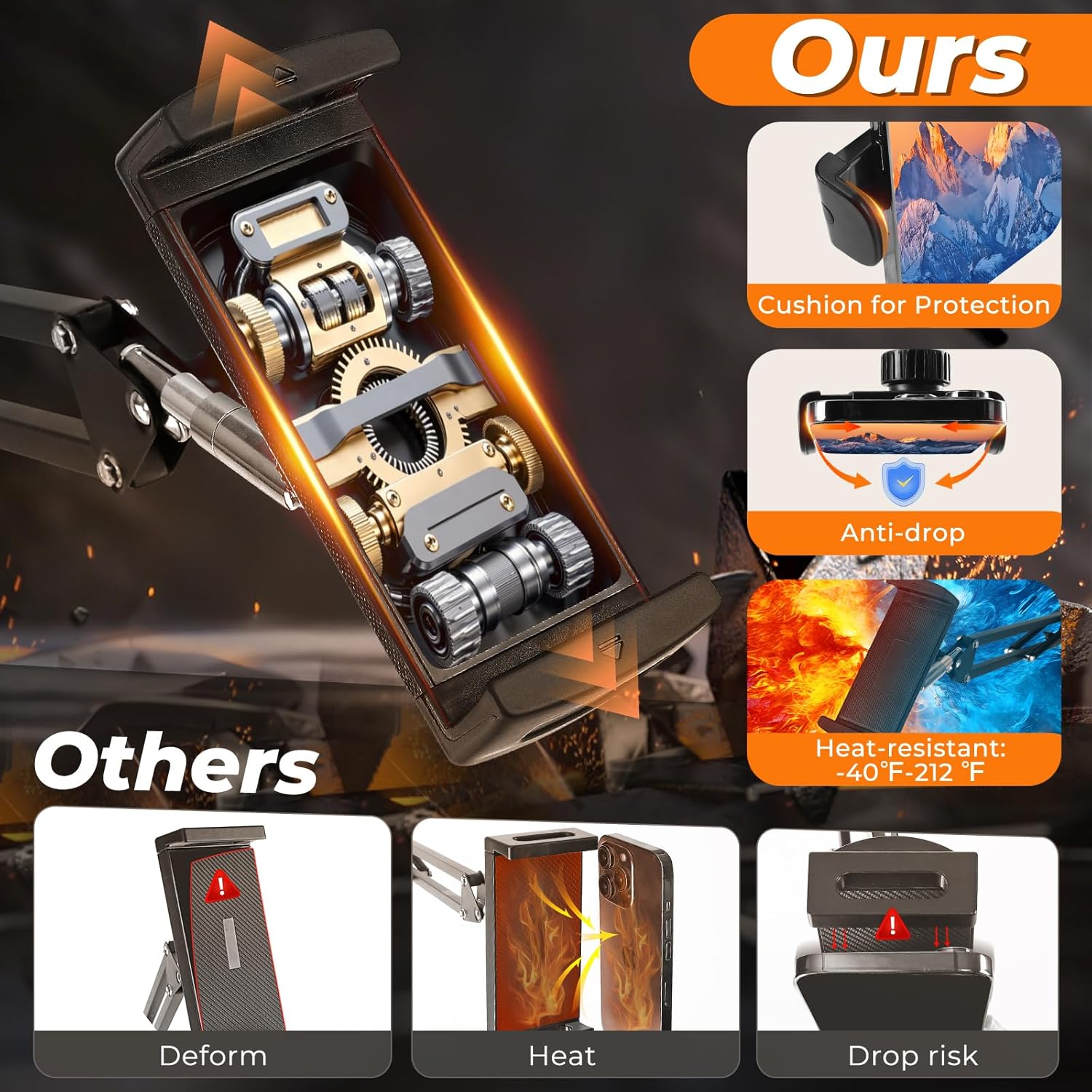 Compatible with Phone Grip This clampfeatures a unique circular vent design that reduces contact between your phone and the holder, improving airflow and preventing overheating. It keeps your phone cool, extending battery life and ensuring smooth performance.