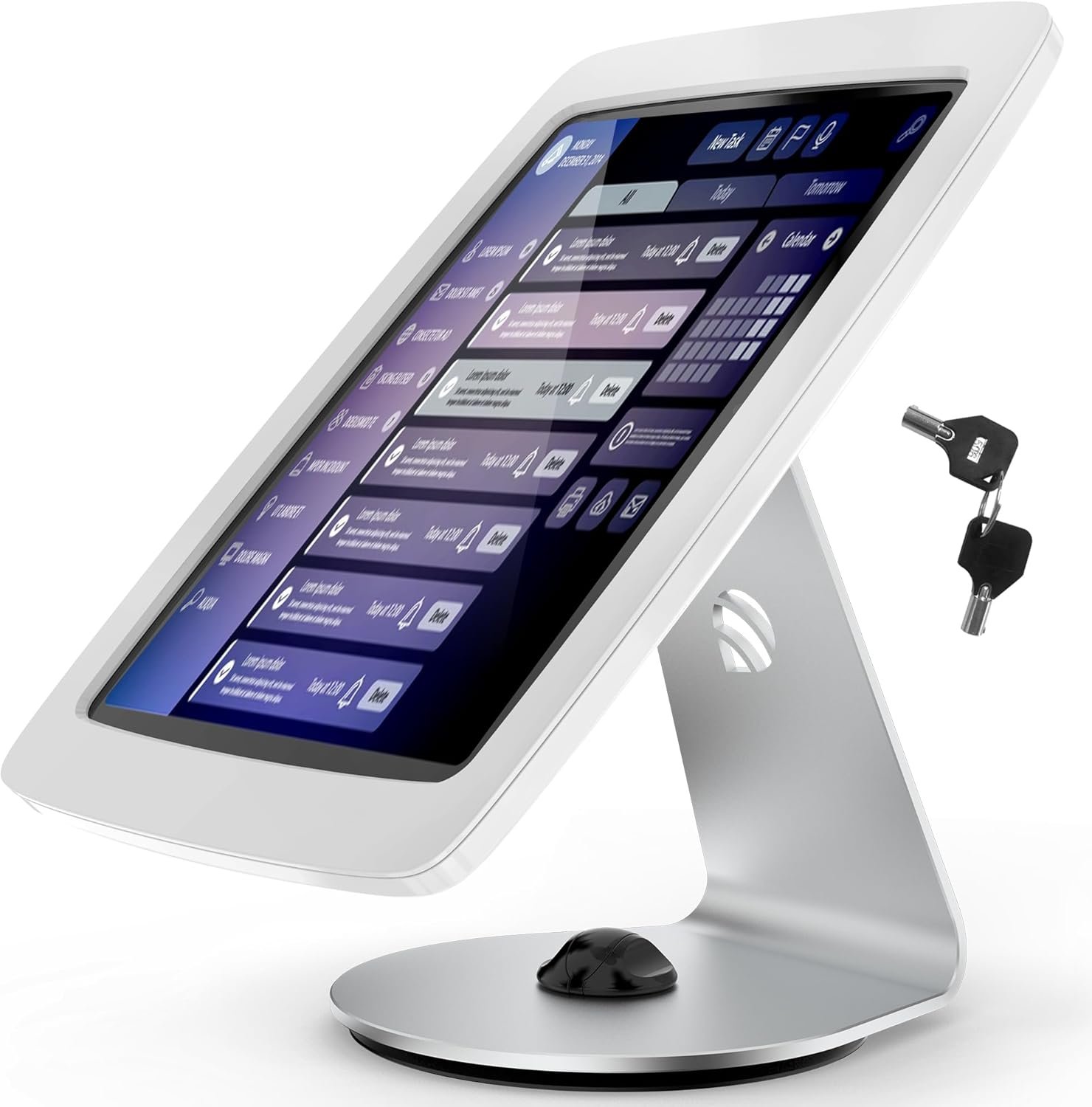✔ Lockable Design for Security – Keep your tablet safe with the built-in lock, making the tablet desk stand ideal for retail or public spaces.