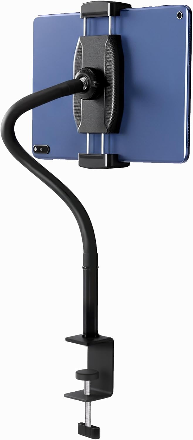 Tablet Stand Holder, Gooseneck iPad Holder Clamp Mount, 360° Adjustable Arm Mount for iPad mini/Air/Pro、Kindle Fire, Galaxy Tabs, All 4.7″-13.5″ Tablets, for Work Meetings, Video, Bed, Kitchen