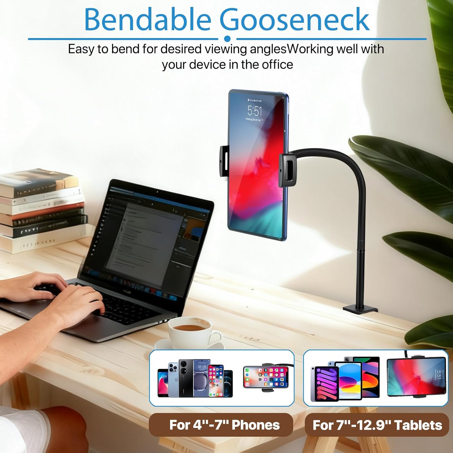 【Durable and stable, focused on every moment】 Made of thick solid metal material, the 13.7-inch ultra long flexible gooseneck arm provides stable support without shaking. Say goodbye to the shaking troubles of plastic brackets. Whether it’s typing, binge watching, or video recording, the device is always firmly fixed, helping you work efficiently, immerse yourself in learning, and focus on creation.