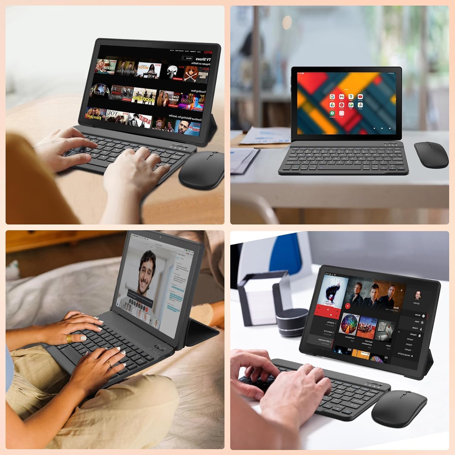 【Dual-Function 2-in-1 Tablet】URAO Android 15 Tablet is a game-changer with 2-in-1 professional work mode. The tablet is compatible with a Bluetooth keyboard, mouse, stylus, headset, and a convenient foldable case. The setup and connection process is straight forward, enabling you to effortlessly transform your tablet into either a laptop or a computer mode. Friendly Tips: Mouse does not come with batteries.