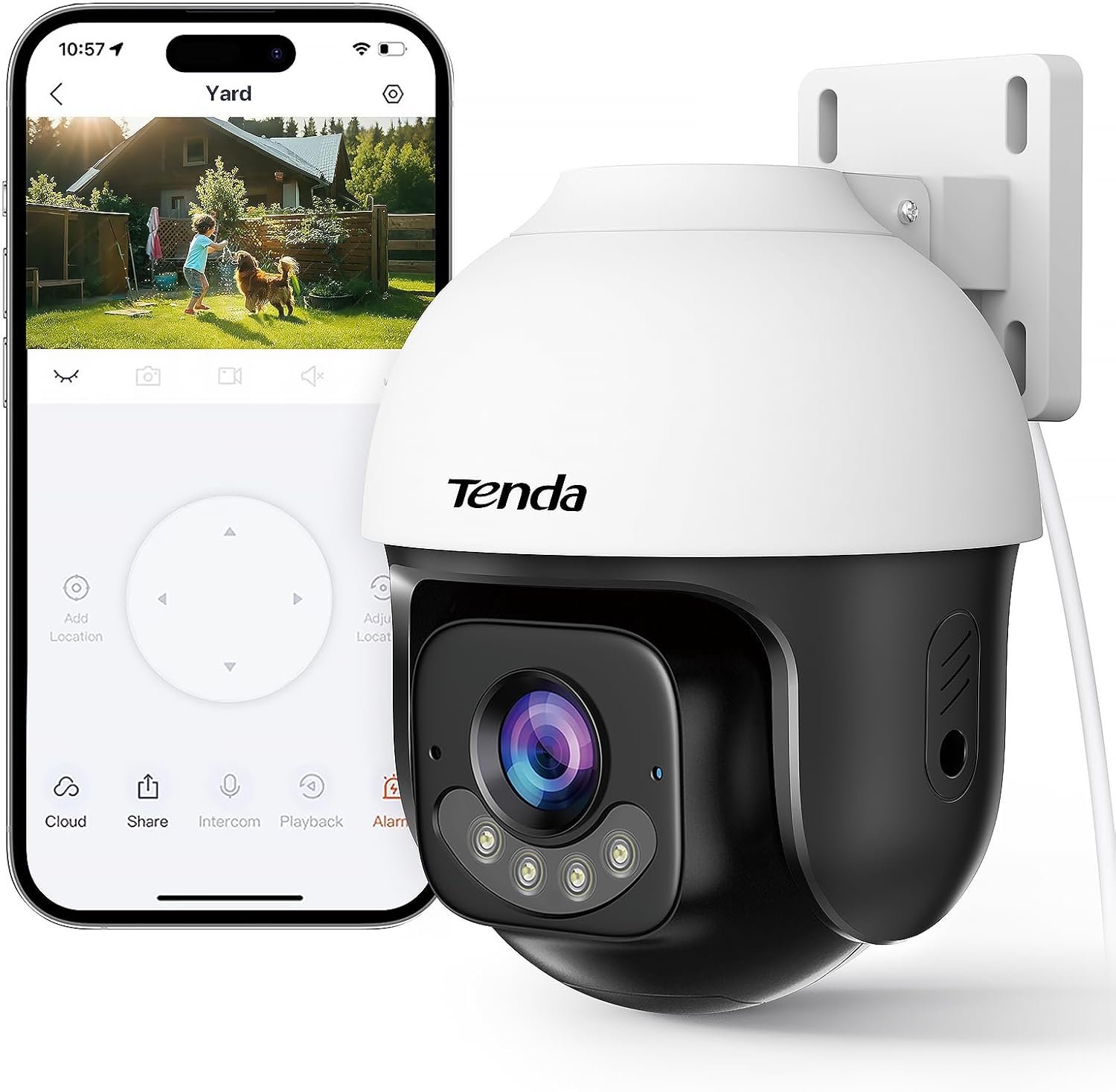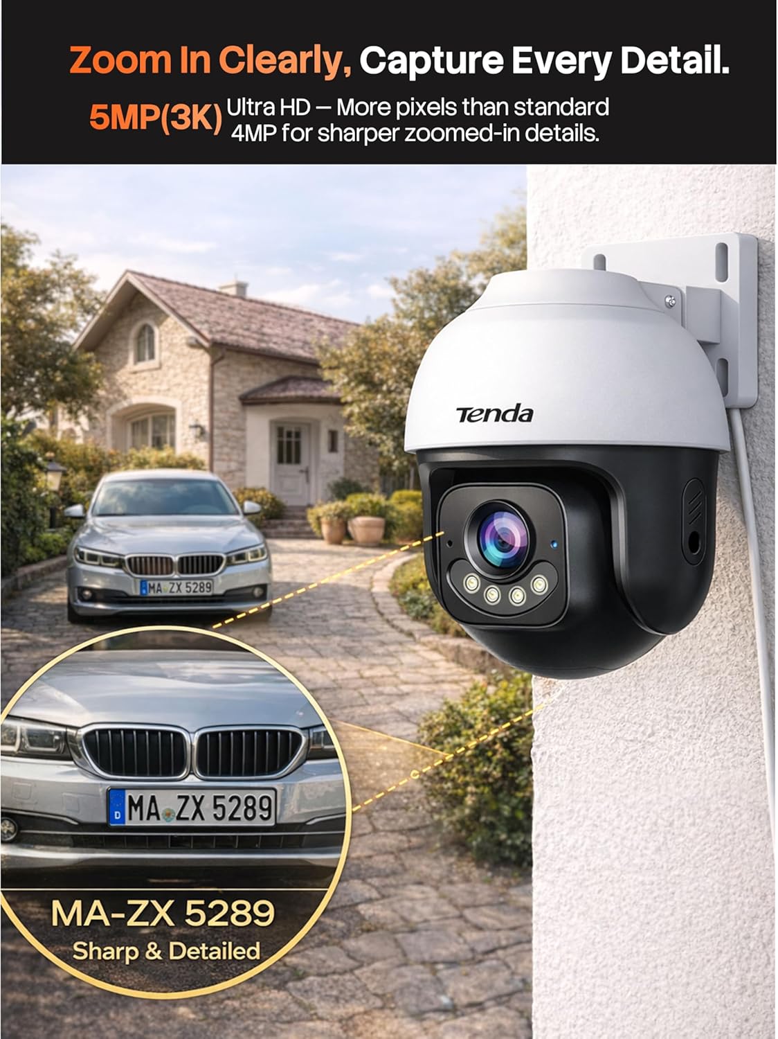 Tenda 5MP QHD Outdoor Pan/Tilt Wi-Fi Security Camera, 360° Full Coverage, Color Night Vision, AI Human/Vehicle/Motion Detection, 2-Way Talk, IP65, WiFi 6,24/7 Plug-in Guard for Your Yard (CH7 2.0)