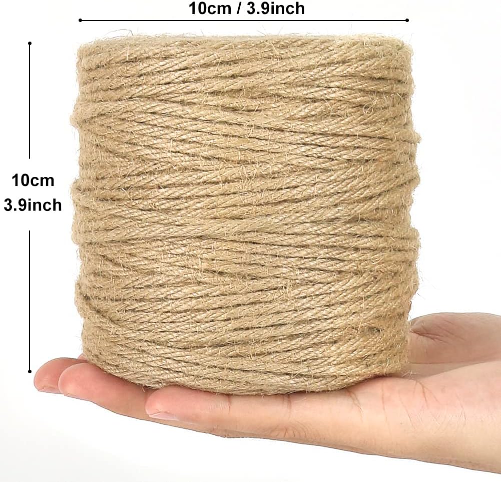 Tenn Well 328 Feet 4mm Jute Twine, Thick Twine Rope for Crafts, Gift Wrapping, Bundling, Gardening, Christmas Decor and Macrame Projects