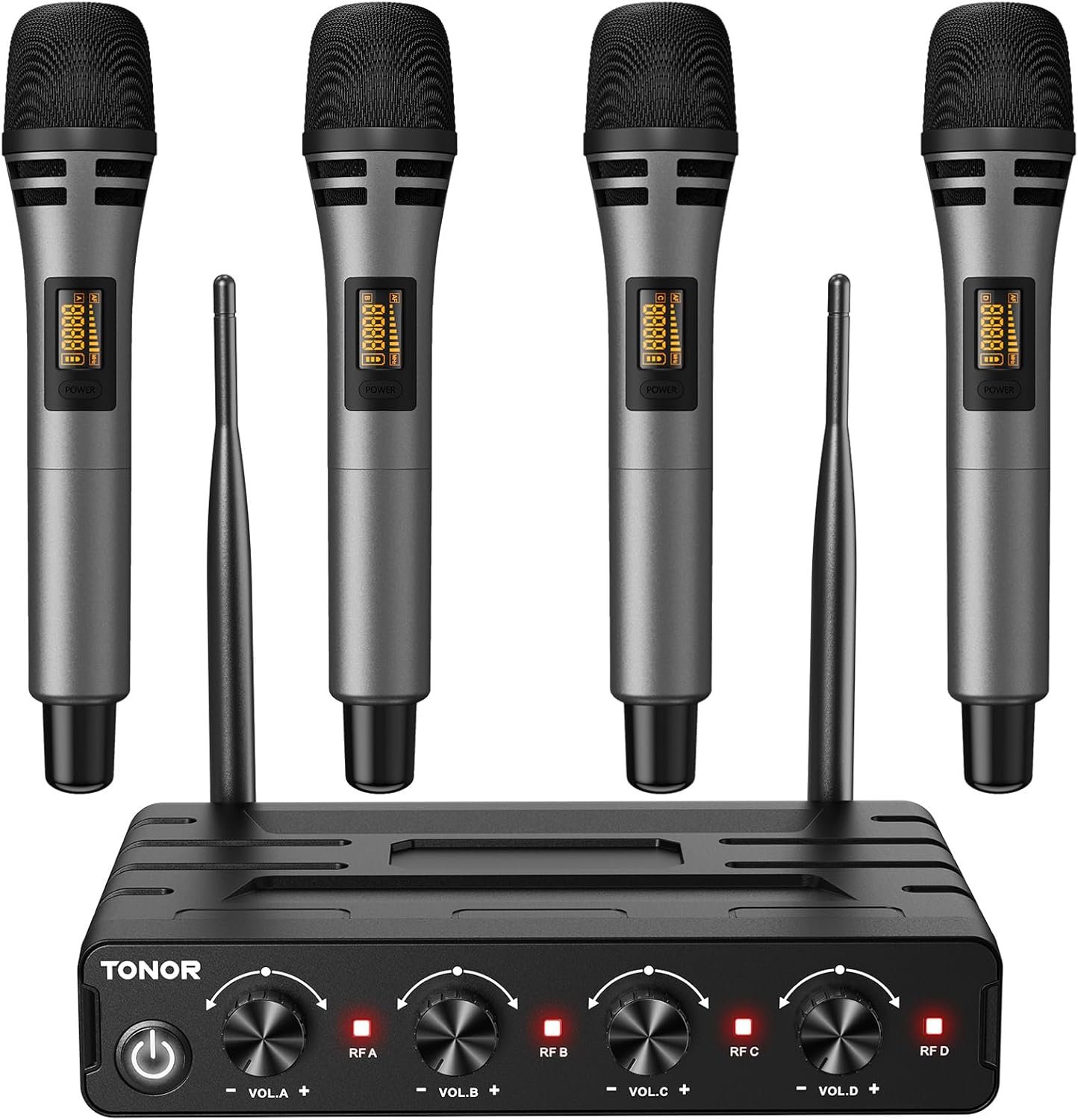 TONOR Wireless Microphones System with 4×10 Channels Cordless Handheld Microfono Inalambrico, 200FT UHF Range, Mics with Stable Signal Transmission for Karaoke Singing Party Church Wedding PA Speaker
