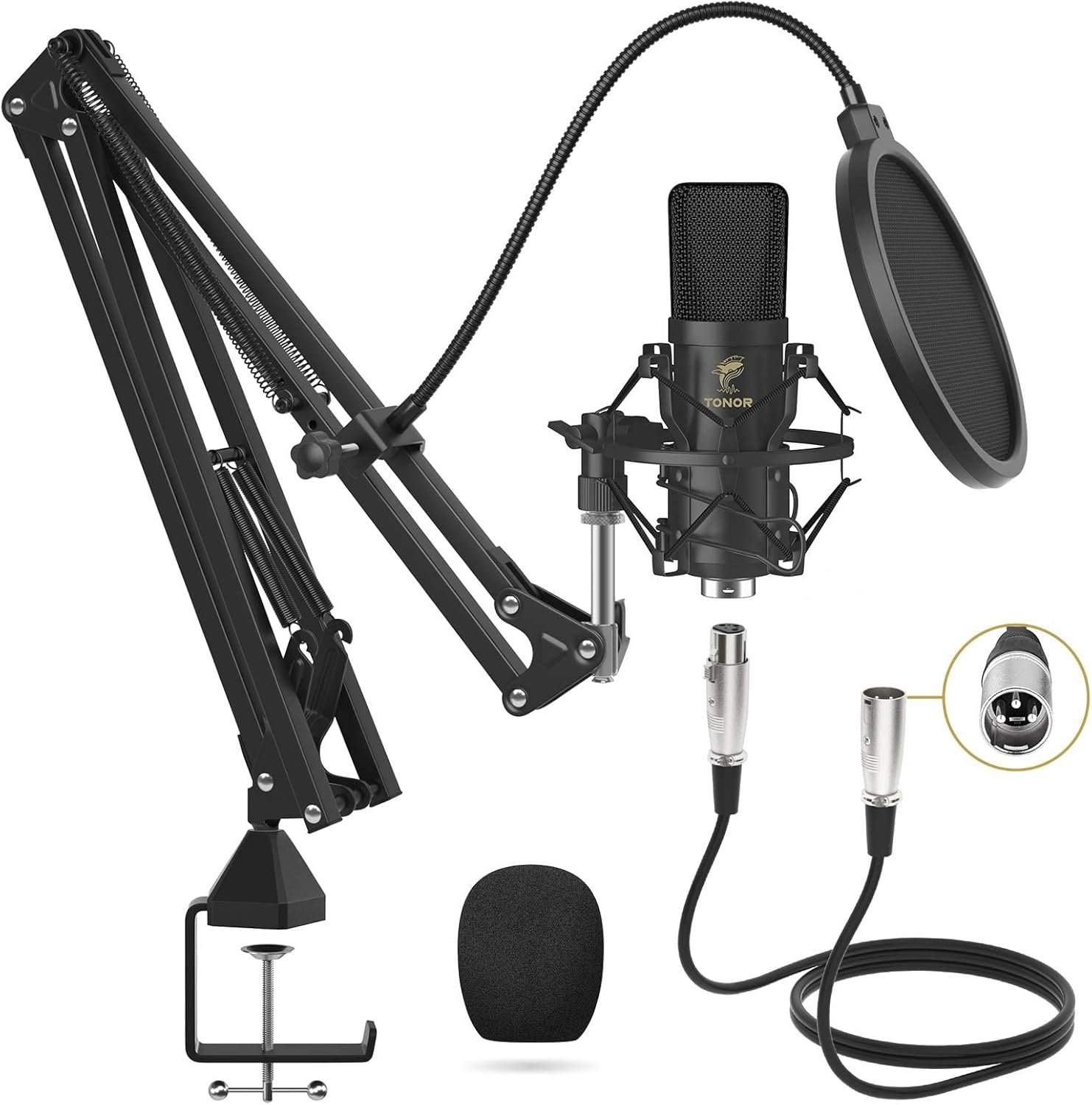 TONOR XLR Condenser Microphone, Professional Cardioid Studio Mic Kit with T20 Boom Arm, Shock Mount, Pop Filter for Recording, Podcasting, Voice Over, Streaming, Home Studio, YouTube (TC20)