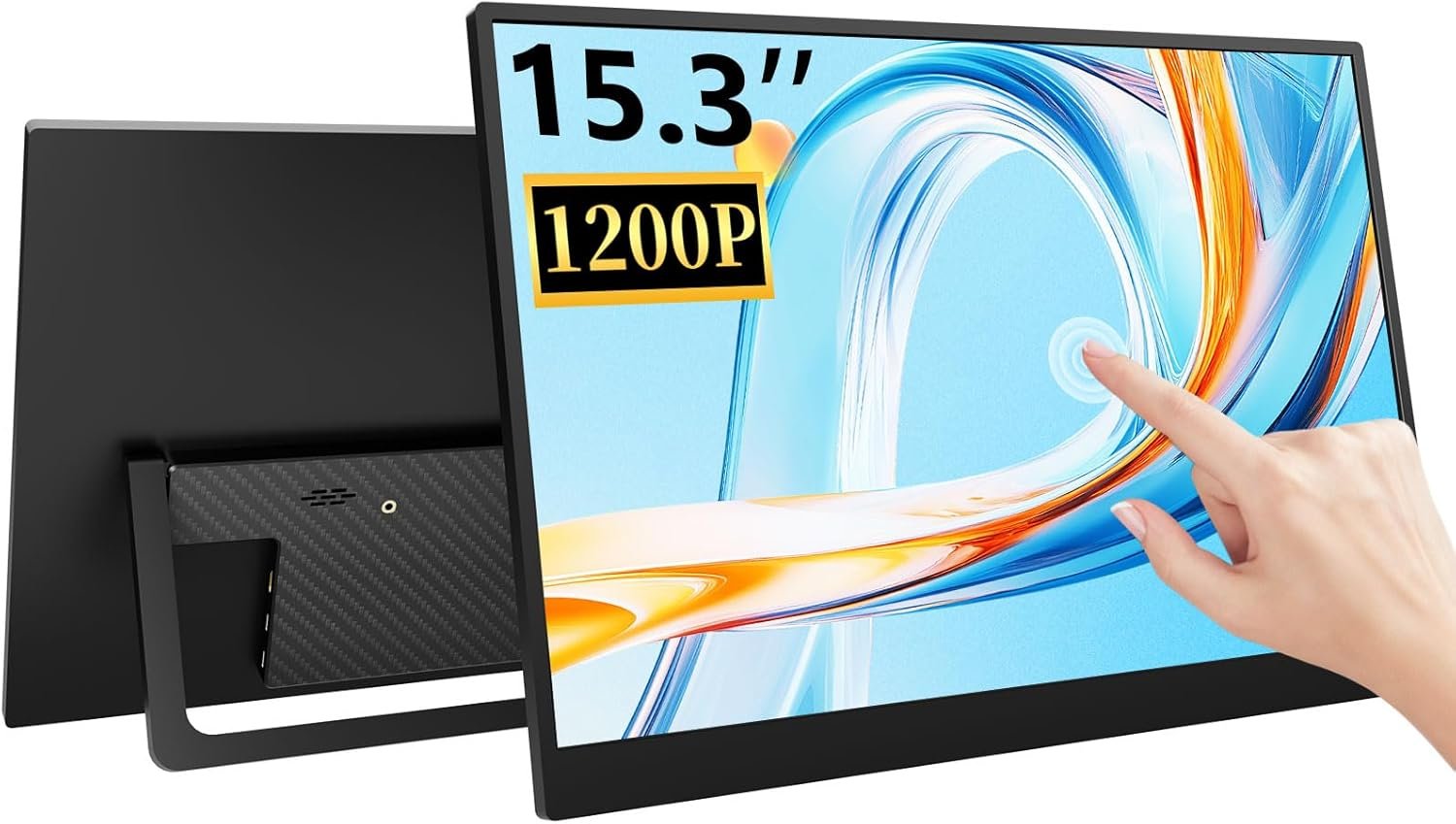 Touchscreen Portable Monitor 15.3 Inch FHD 1200P USB-C HDMI Ultra-Thin Gaming Display, Built-in Stand & Speakers, Compatible with Laptops, PCs, Macs, Phones, PS4/5, Travel Monitor