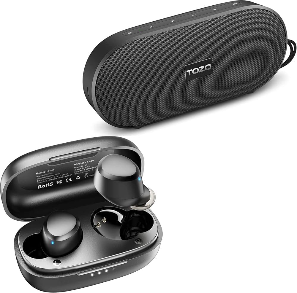 TOZO A1 Wireless Earbuds Bluetooth 5.3 in Ear Light-Weight Headphones Black PA1 Bluetooth Speaker with 20w Stereo Sound Black