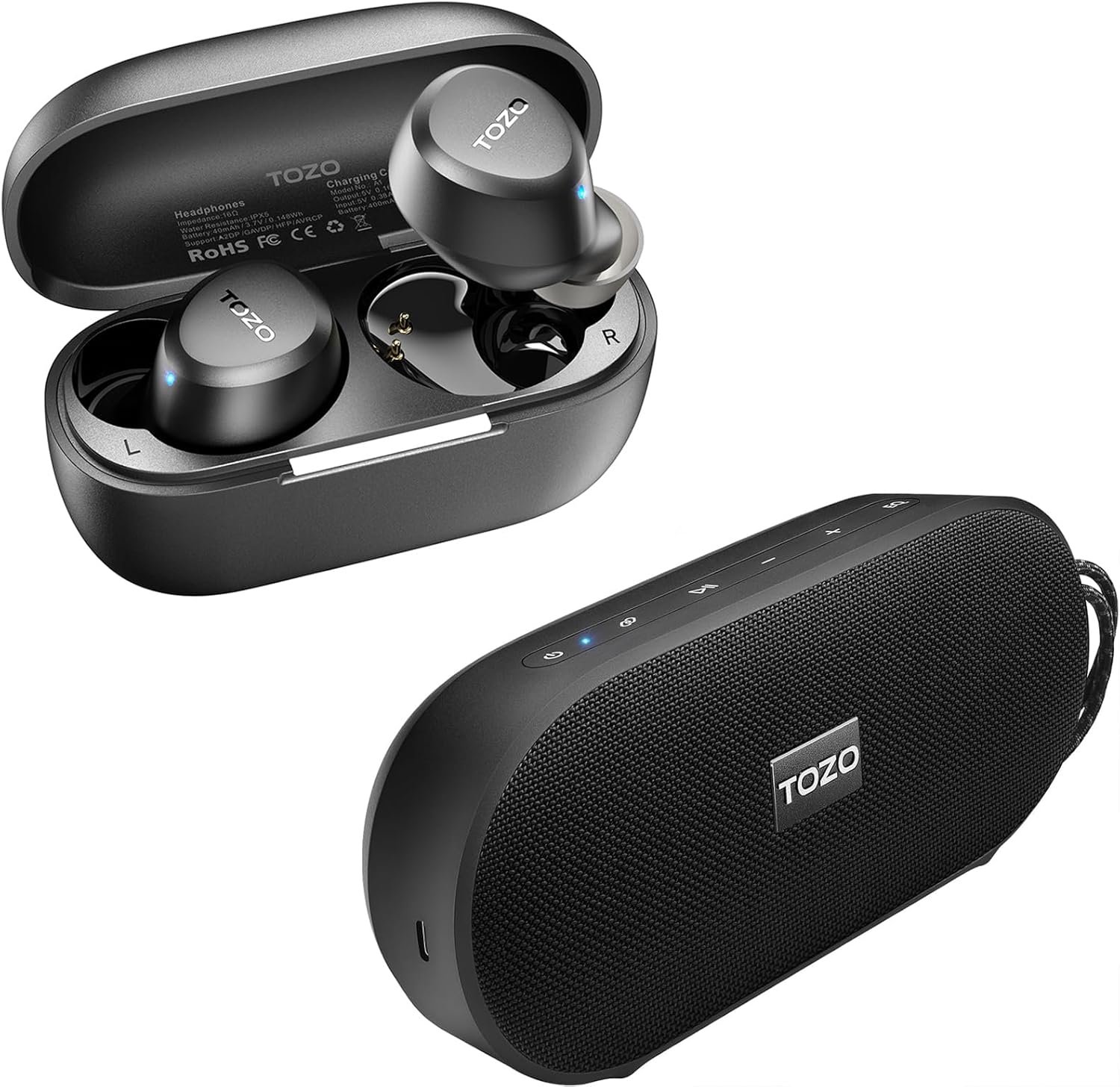 TOZO A1 Wireless Earbuds Bluetooth 5.3 Light Weight in Ear with TOZO PA1 Bluetooth Speaker with 20W Stereo Sound