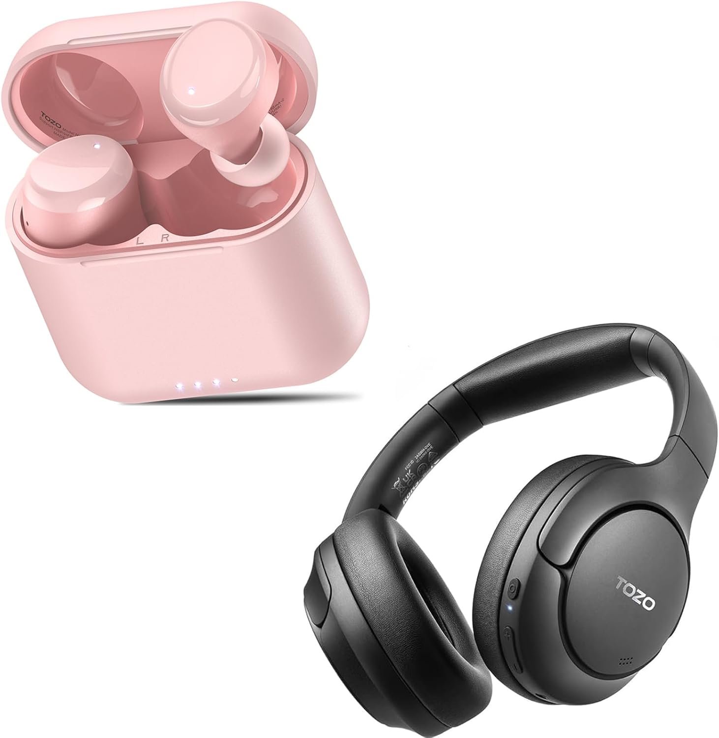 TOZO T6 Wireless Earbuds, Bluetooth 5.3 Ear Buds with TOZO HT2 Hybrid Active Noise Cancelling Headphones
