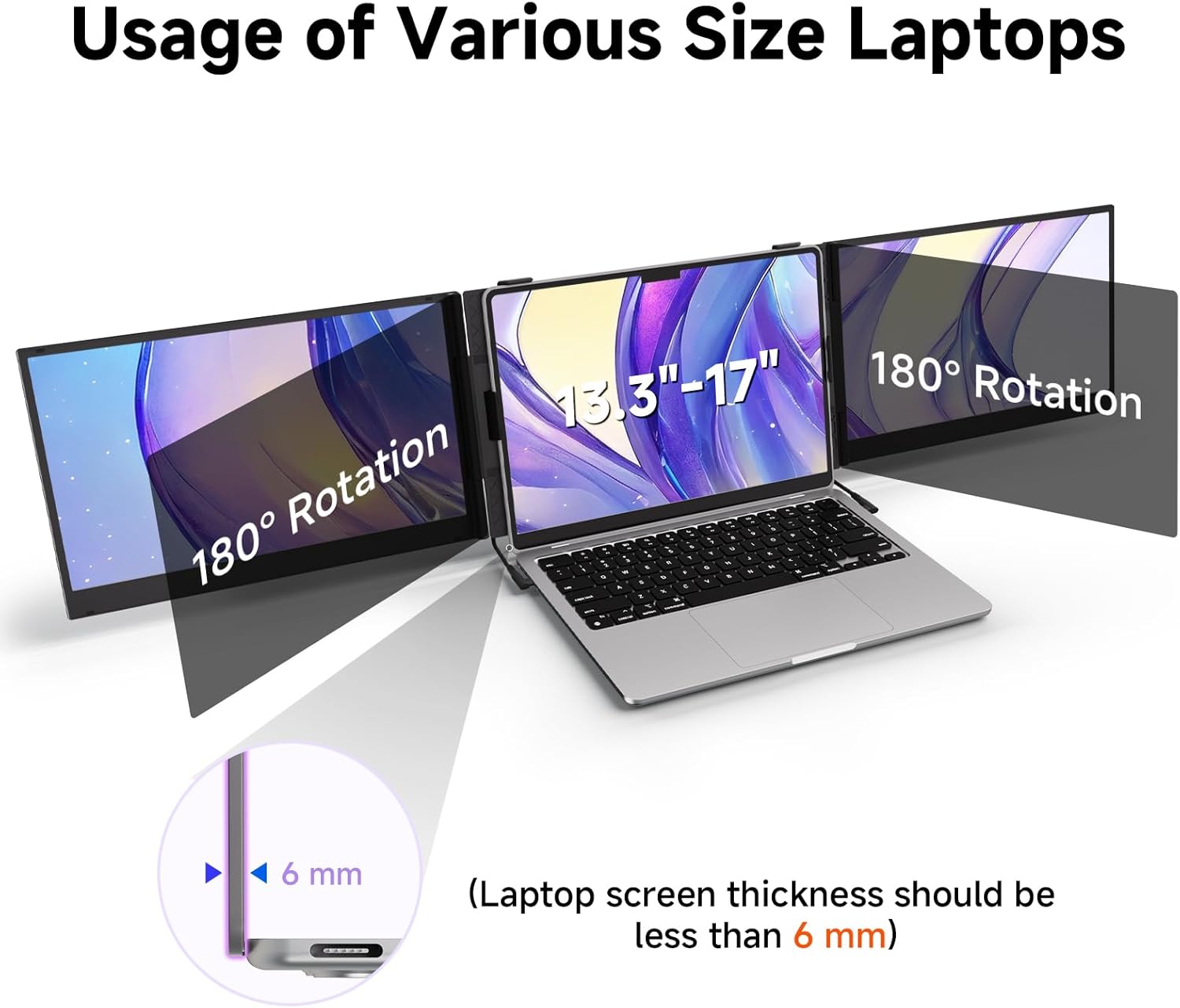 Ultra Thin & Lightweight: Get ready to experience a game-changing level of portability. At a mere 4.5mm thin of one screen and weighing just 2.2lb, this laptop screen extender is significantly lighter (40% less than traditional triple-screen setups tipping the scales at 3.6lb). Tailored for 13-17″ laptops, it delivers a whopping 300% boost in productivity with its dual-screen functionality, allowing for seamless multitasking and streamlined workflow management from anywhere.