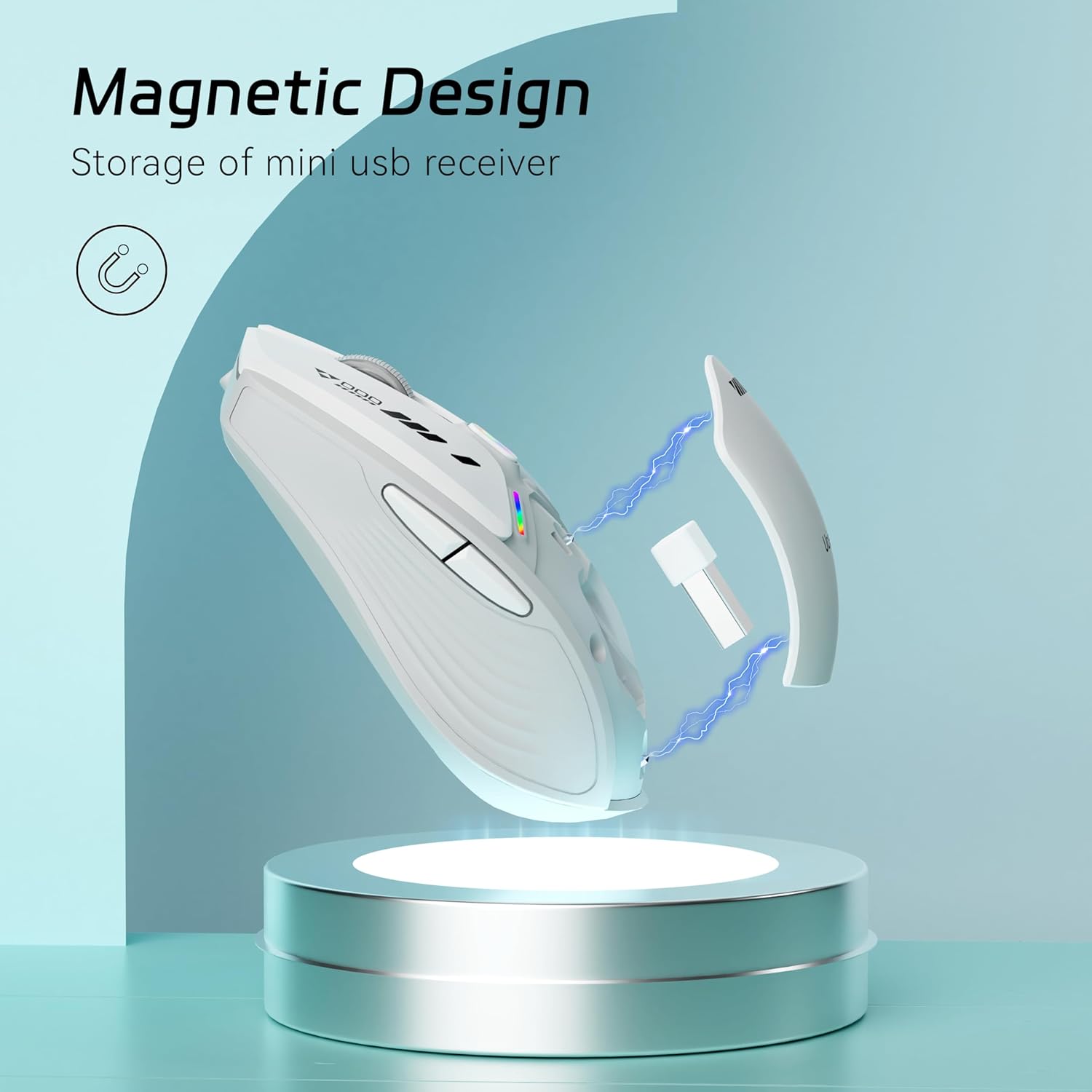 Uciefy V19 Wireless Mouse, 2.4GHz Rechargeable Mouse LED with Battery Indicator, Magnetic