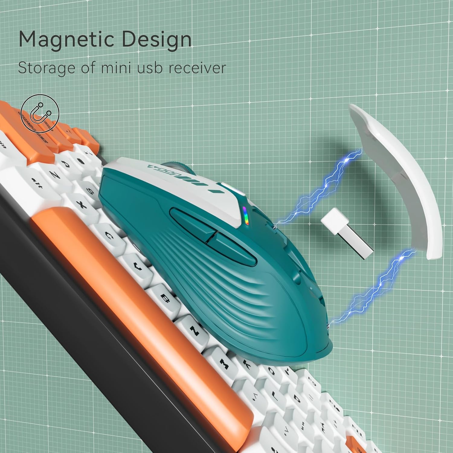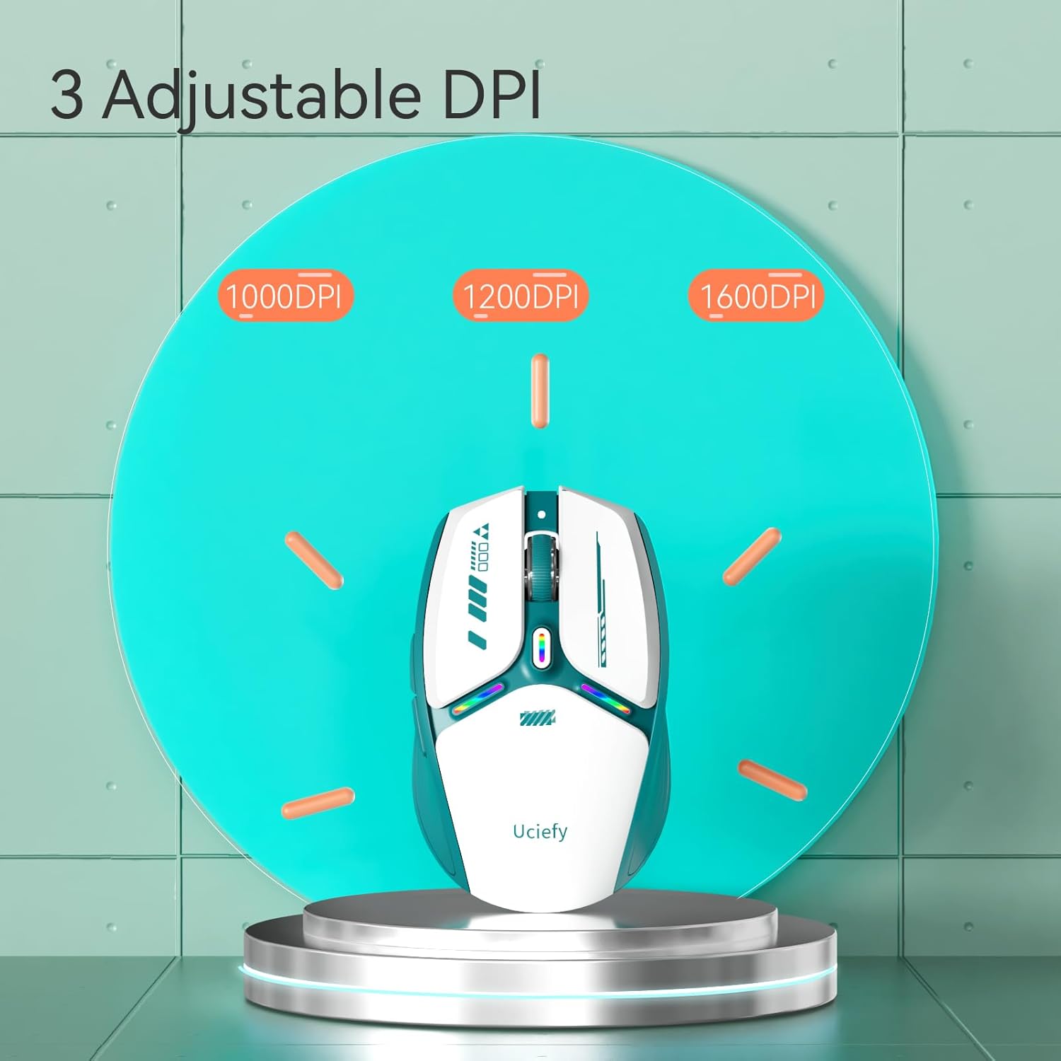 Uciefy V19 Wireless Mouse, 2.4GHz Rechargeable Mouse LED with Battery Indicator, Magnetic
