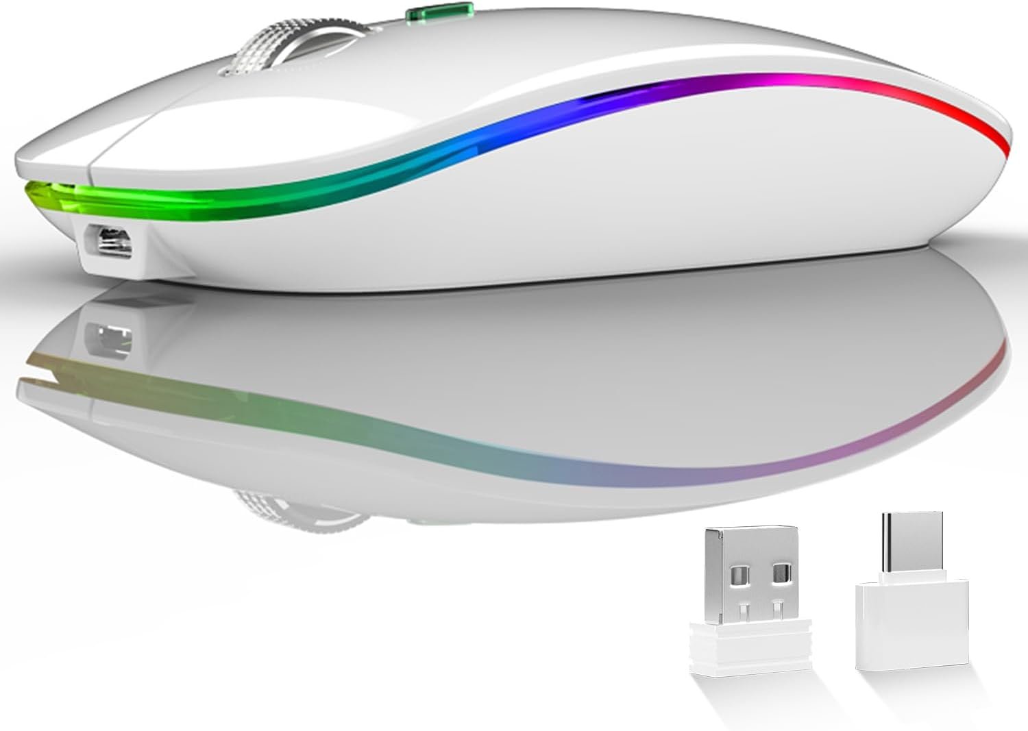Uiosmuph LED Wireless Mouse, G12 Slim Rechargeable Silent Mouse, 2.4G Portable USB Optical