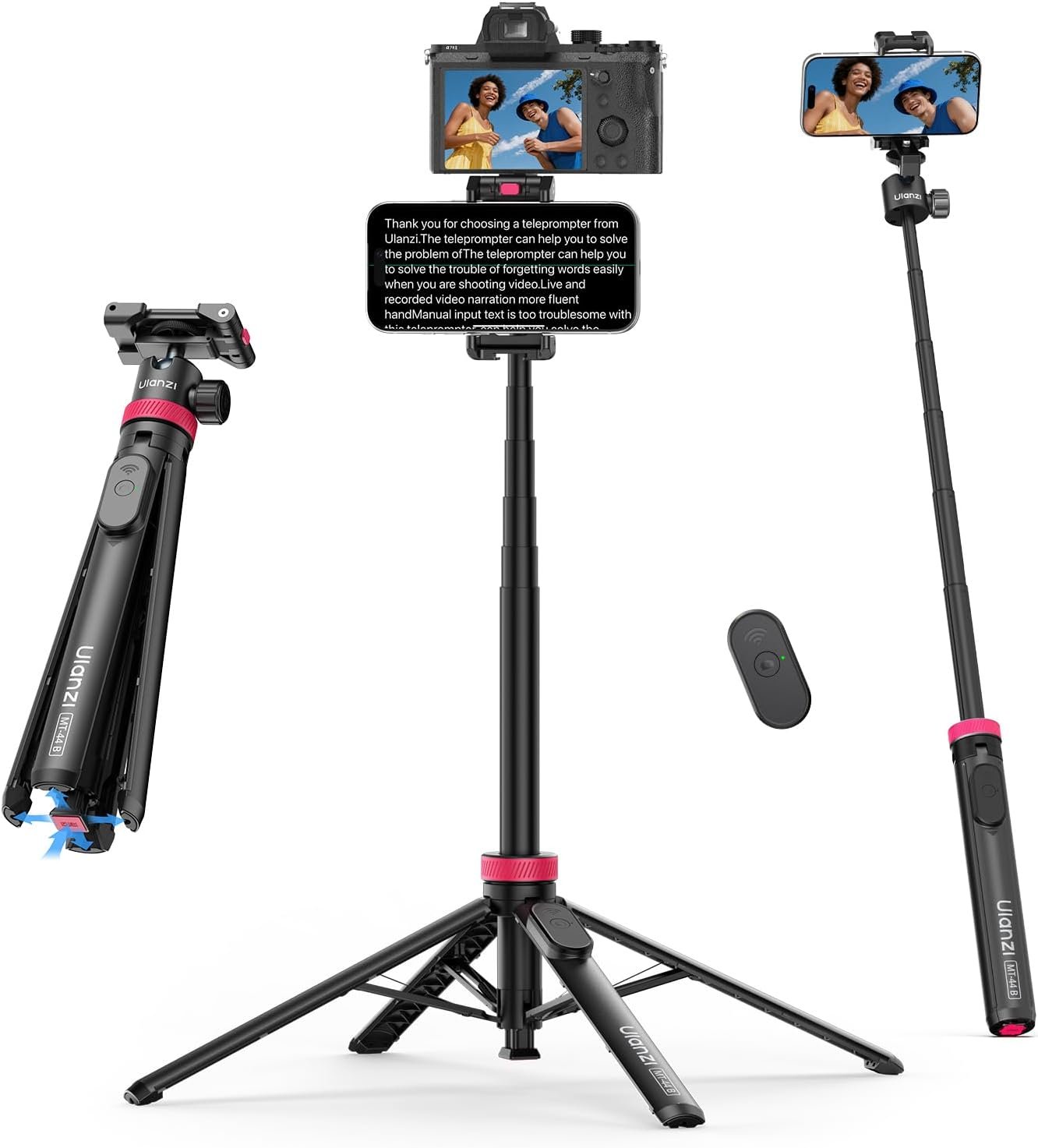 ULANZI MT-44B Phone Tripod, 59” Auto Open Phone Stand with Dual Camera Set up, 360° Ball Head, Extendable Selfie Stick w Cold Shoe for Filming/Selfie in Vlog, Family Gatherings, Black