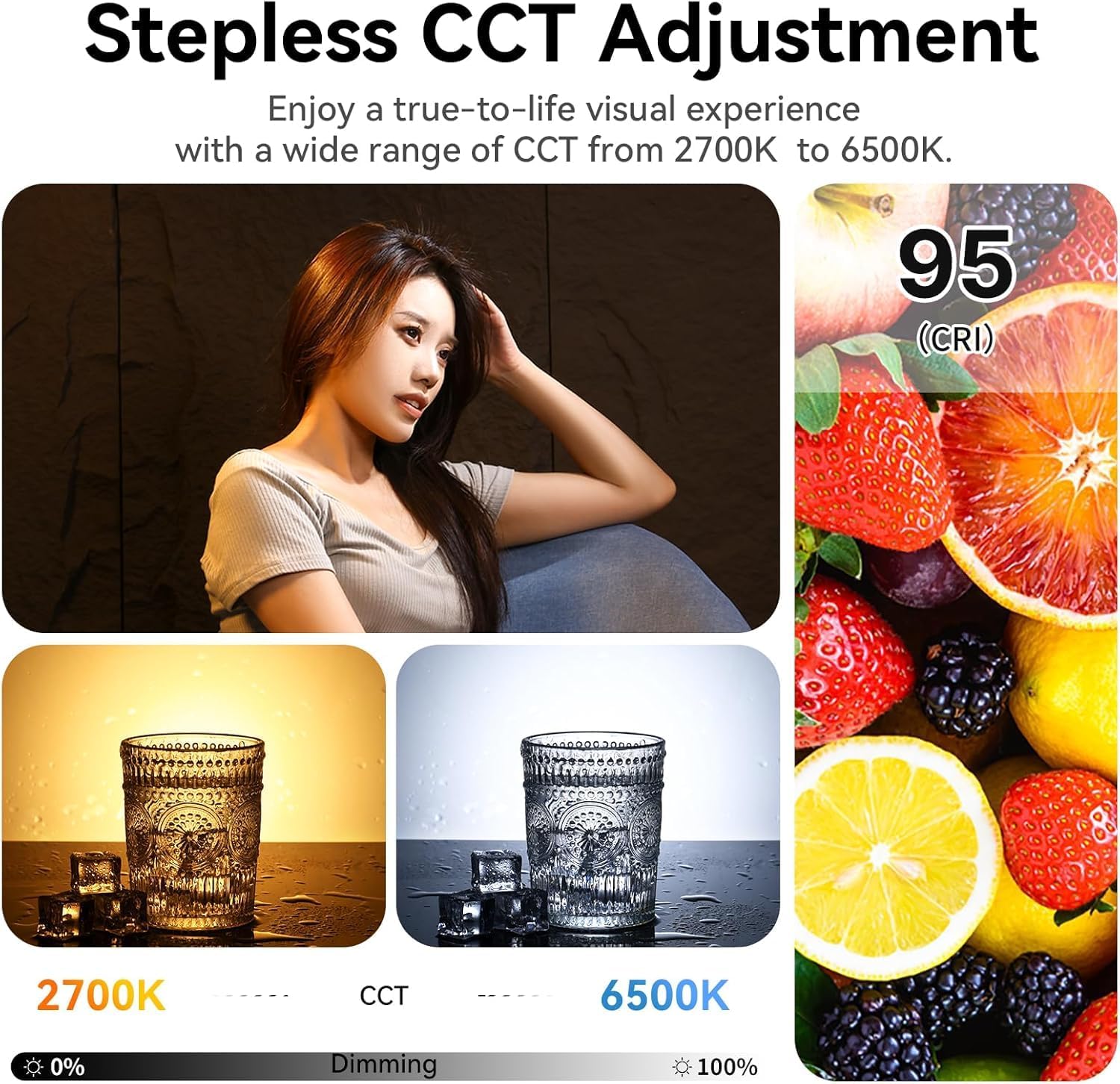 Comprehensive CCT & Dimming Capabilities: Ulanzi continuous photography lighting delivers 6500k Lux@1m(with reflector), 2700-6500K, CRI 95+ and 6 unique special effects for ensuring true-to-life color rendition. This LED video light works perfectly as a fill light or key light for videography, weddings, YouTube/ TikTok videos, filmmaking and live streaming.