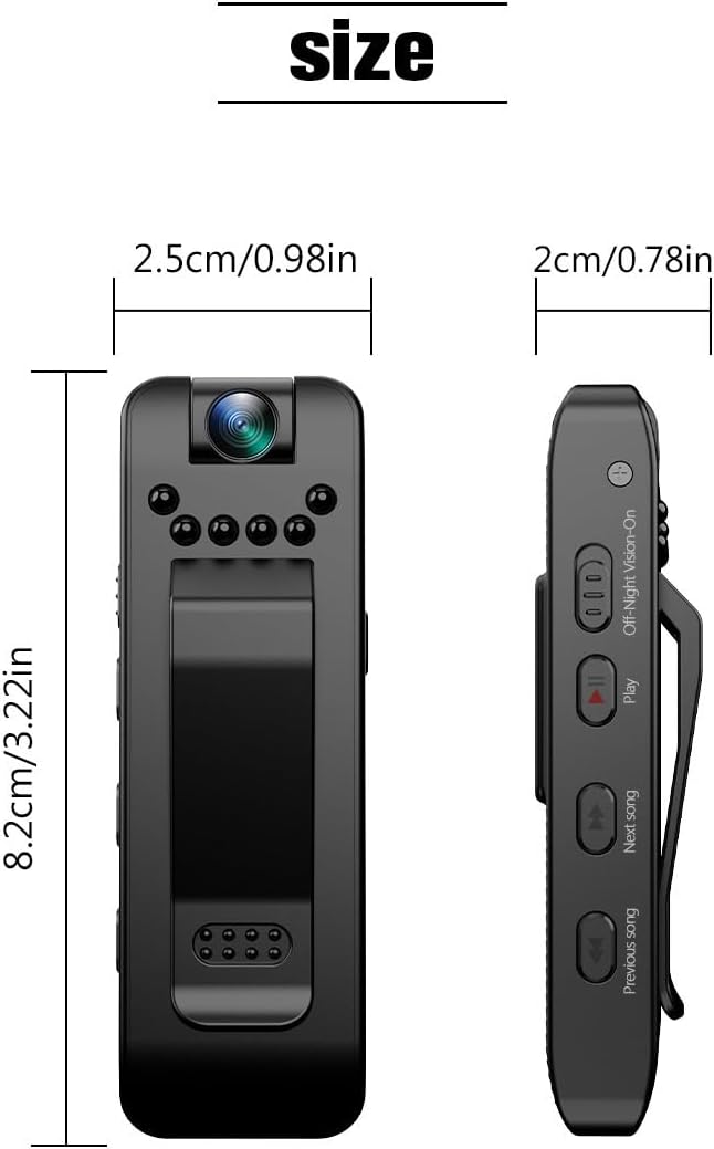 Small Portable Body Camera Design and 0.85 inch LED Screen:The 3.22×0.98×0.78 size, ultra-light weight ,The 0.85 inch display screen provides the convenience of instant playback, allowing you to view videos and photos at any time
