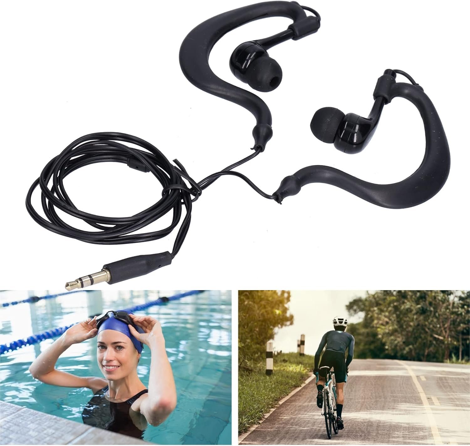 Underwater Swimming Headphones, Stereo Headphones with 3.5 Mm Ear Hook, Wired Sports Earphones for Swimming, Running, Surfing (Black)