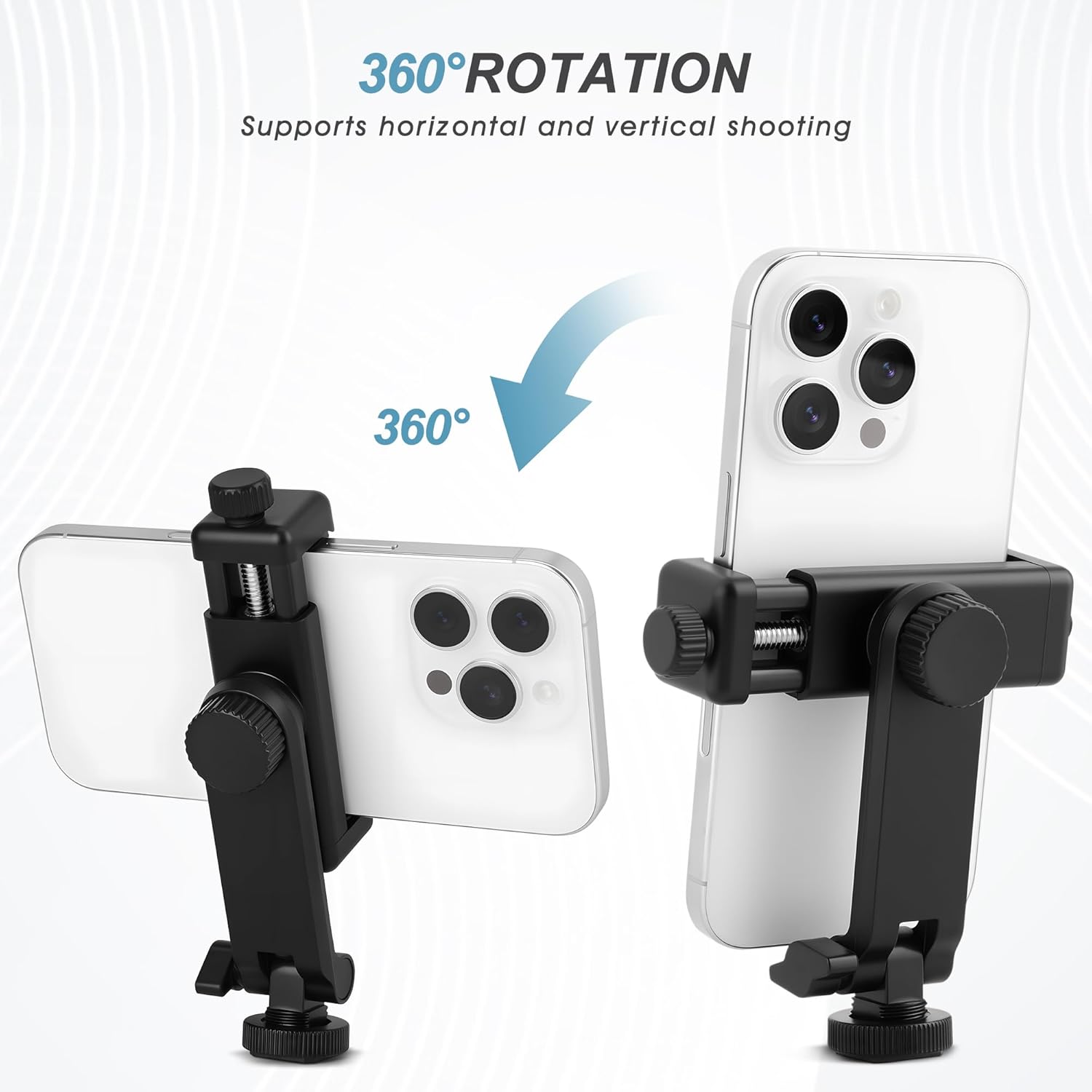 VERTICAL OR HORIZONTAL DESIGN: It can be 360° rotation adjustable,Shooting in various angles for landscape or portrait requirements. And easy to hold or release the phone by operating the knob.