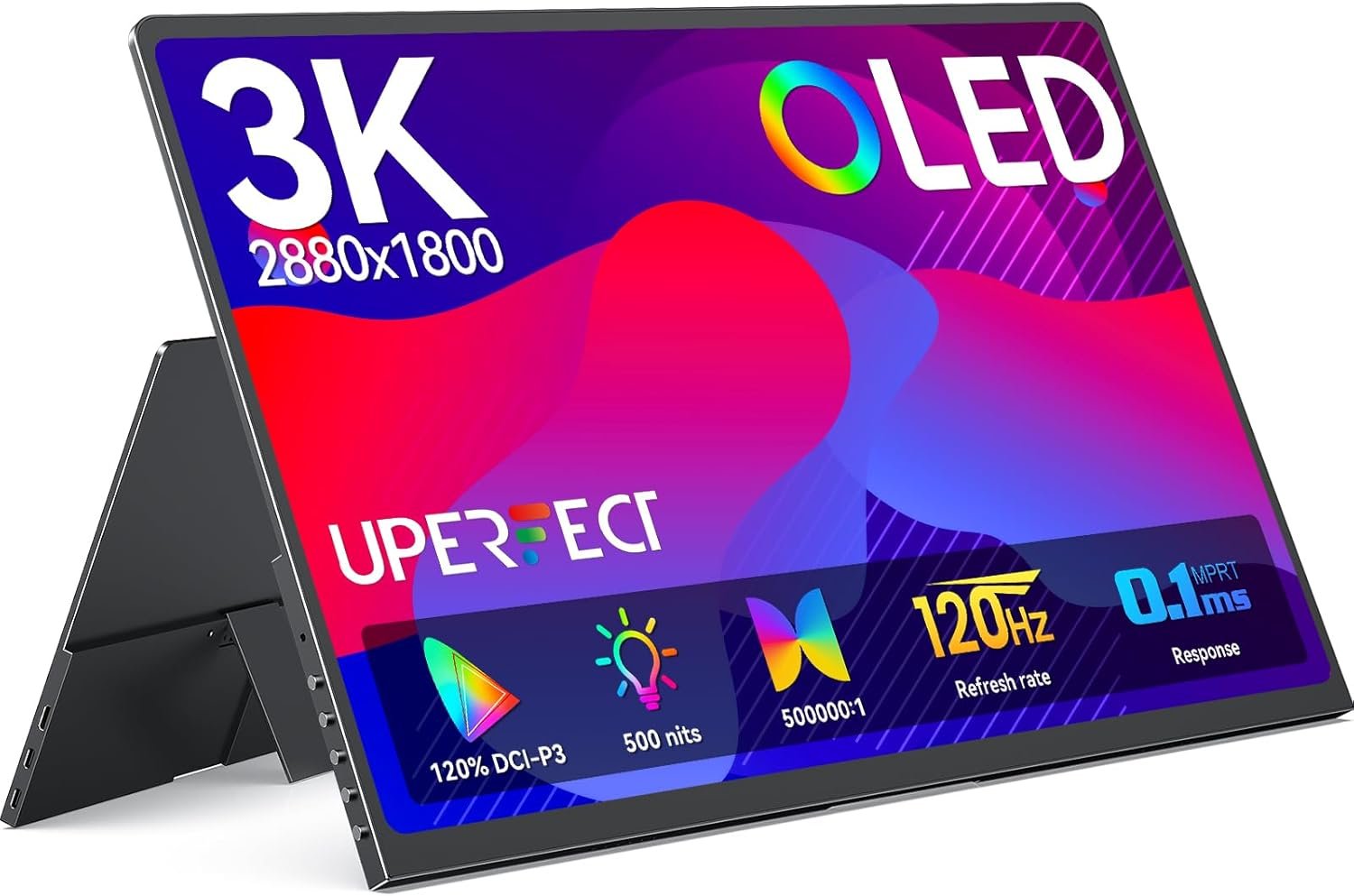 UPERFECT OLED Portable Monitor 14″, 3K 2880×1800 | 120Hz | 0.1ms Portable Gaming Monitor, 500 Nits |120% DCI-P3 | 500000:1 Contrast | Ultra-Slim Design for Laptop Mini PC Phone Game Consoles