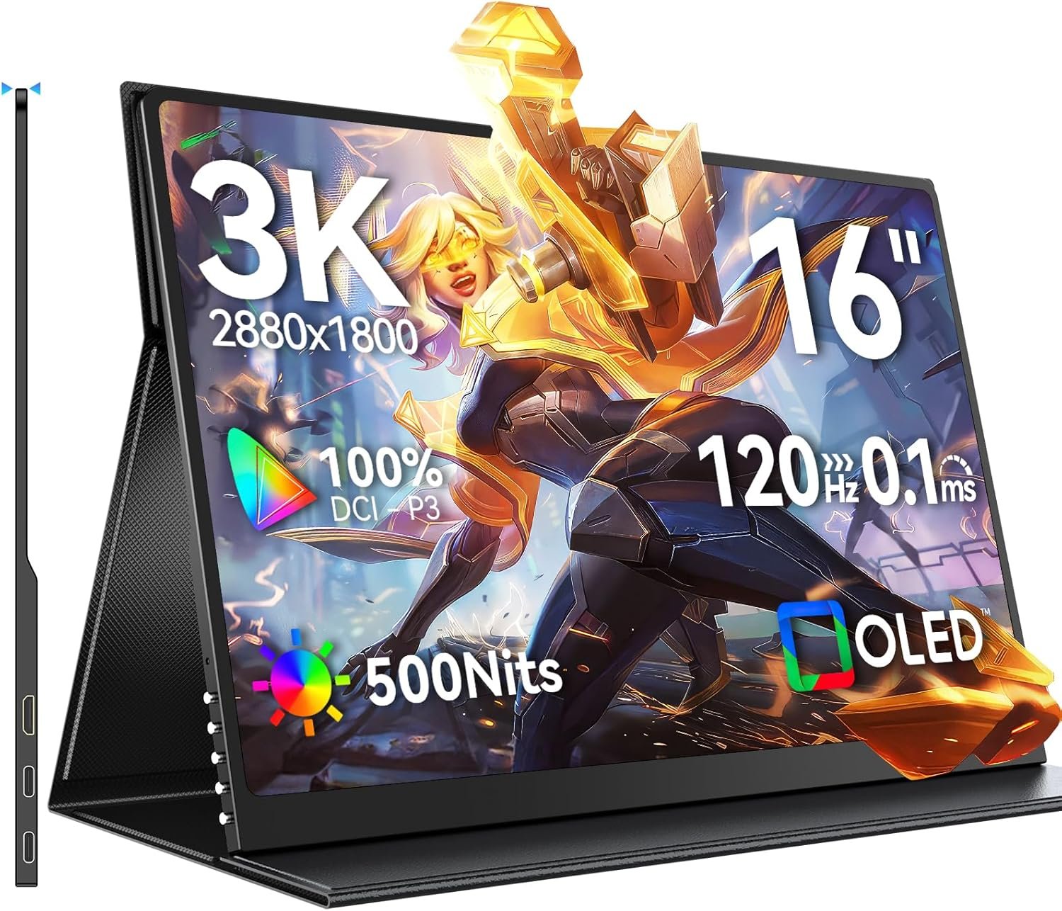 UPERFECT OLED Portable Monitor 16″, 3K 2880×1800 | 120Hz | 0.1ms Portable Gaming Monitor, 500 Nits |100% DCI-P3 | 100000:1 Contrast | Ultra-Slim Design for Laptop Mini PC Phone Game Consoles Ucolor O2