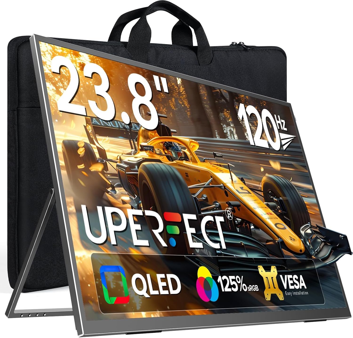 UPERFECT QLED 24″ 120Hz Portable Monitor 1080P 125% sRGB 400Nits w/Stand & VESA, HDMI USB-C FHD Travel Monitor for Laptop/Gaming Devices/Phone/Mini PC, External Second Screen for Gaming & Work