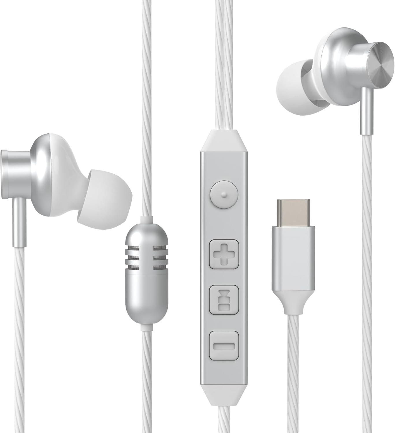 These White USB-C in-ear wired headphones deliver an exceptional audio experience with their built-in high-fidelity sound card, offering crystal-clear sound quality that brings your music,…