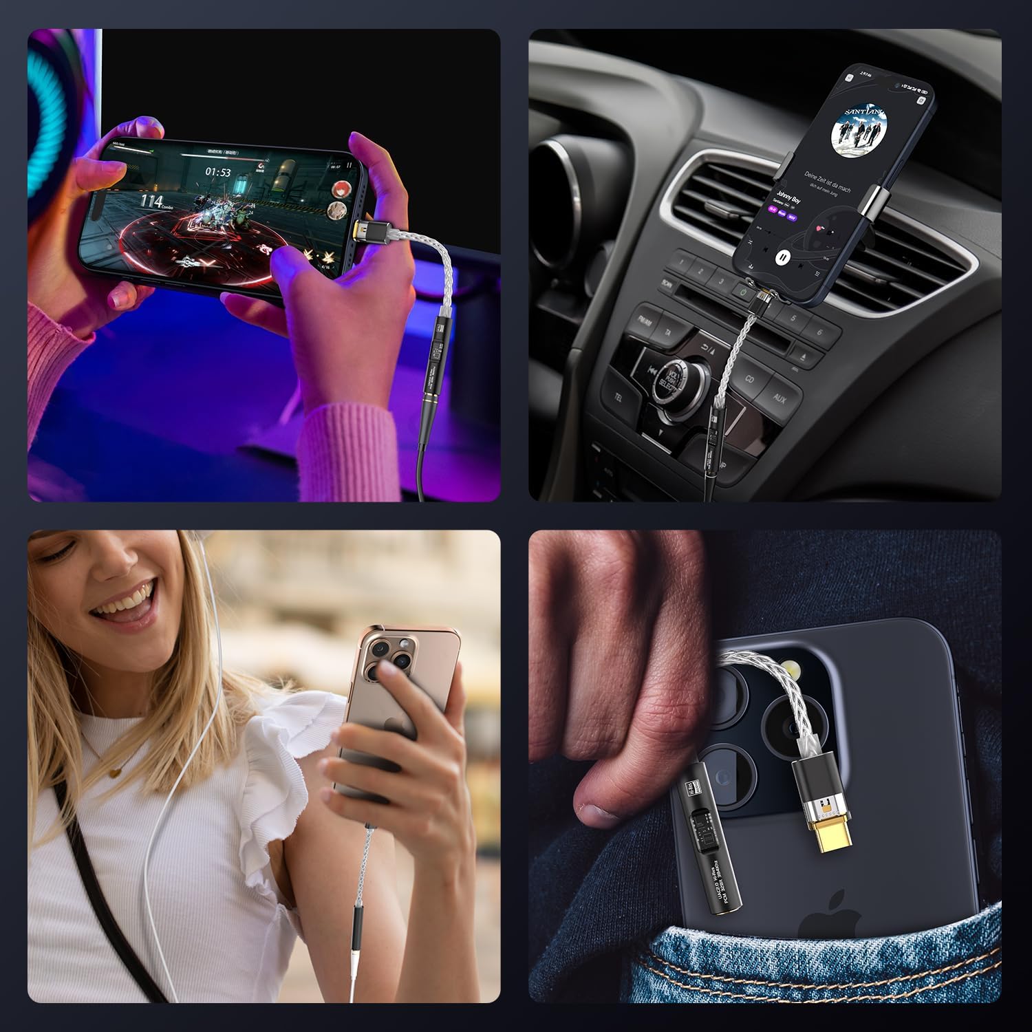 Improvement on Sound Quality:The usbc to headphone jack adapter adopts 8-Strand 4N high-purity single-crystal copper-silver plated wire cores,The fusion of single-crystal copper-silver plated wire fully leverages the advantages of copper and silver metals: Copper provides powerful low-frequency and cohesive mid-frequency, while silver enhances the high-frequency performance details, making the audio more vivid.