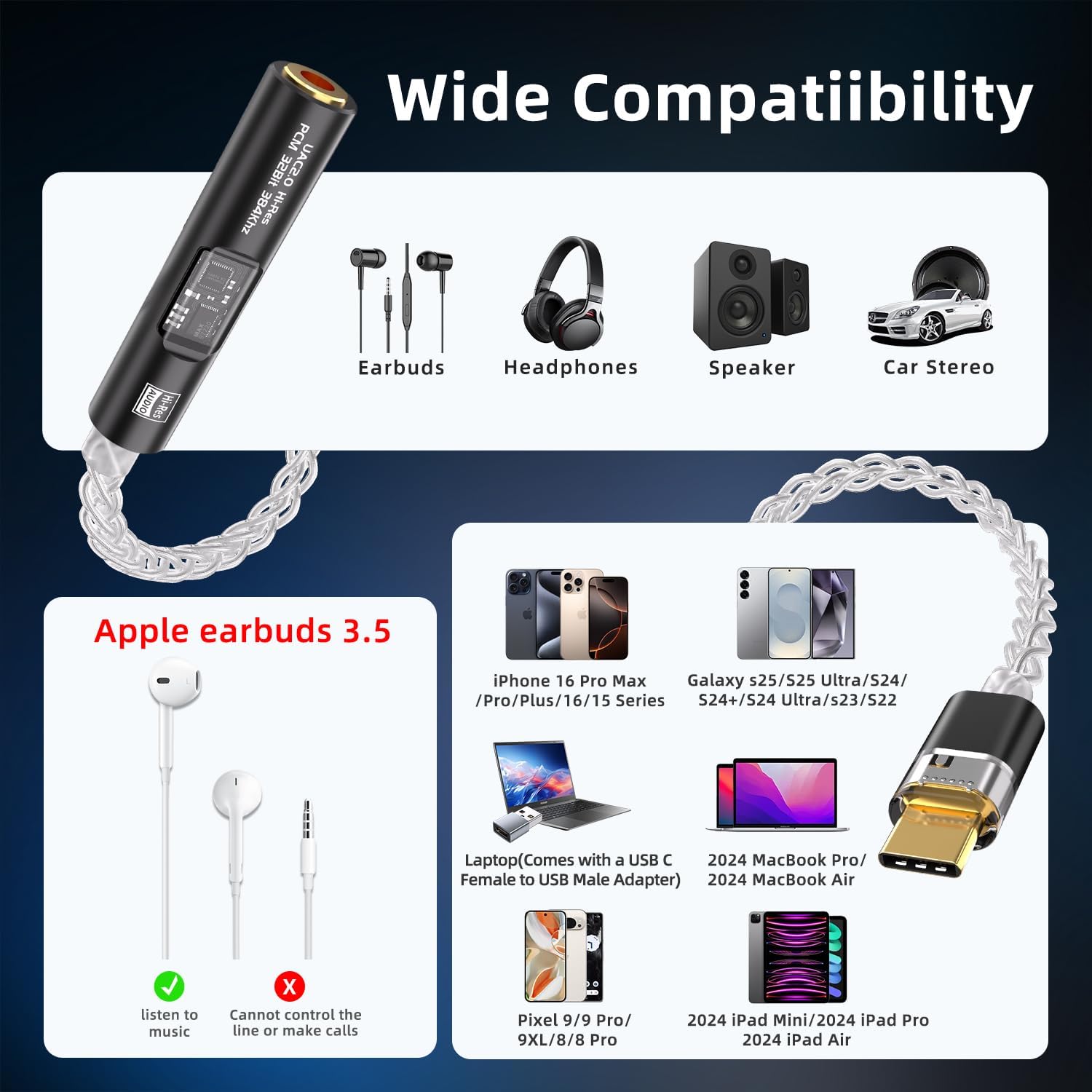 USB-C to 3.5mm Audio Adapter is designed with broad compatibility across smartphones and other devices.