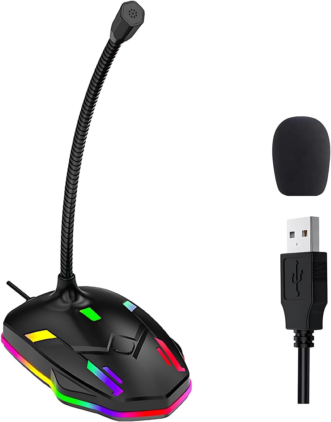 One-Click Mute Button:For a clear indication of the PC microphone status.Multi-Angle Adjustment:Metal hose design,360 degree adjustable,Your angle,you decide.RGB Colorfull breathing light:RGB streaming colorful light will give you a shocking visual experience.Built-in Crystal Sound Card:High performance Smart Chip for echo cancellation and noise reduction.Compatible OS:Win XP/Win7/Win8/Win8.1Win10/Win11/Vista/Mac/Chrome OS/Linux/PS4/PS5.Ideal for streaming,video conference,E-sports game and more