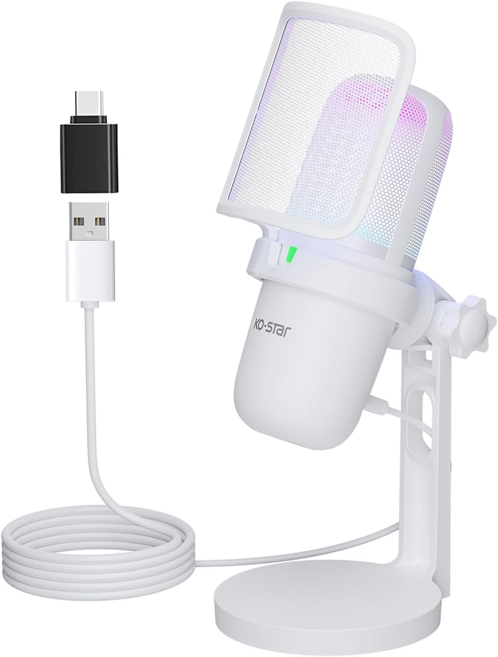 🏆Colorful RGB lighting: The KO-STAR gaming computer microphone is equipped with RGB breathing LED lights, which can automatically change into multiple colors to create an ideal carnival atmosphere and make your gaming or live streaming effects more eye-catching. It can also visually display the working status of the microphone. Light on: working, light off: mute