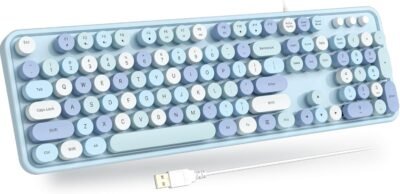 USB Wired Computer Keyboard – Retro Typewriter Keyboard – Full Size Office Keyboard with Number