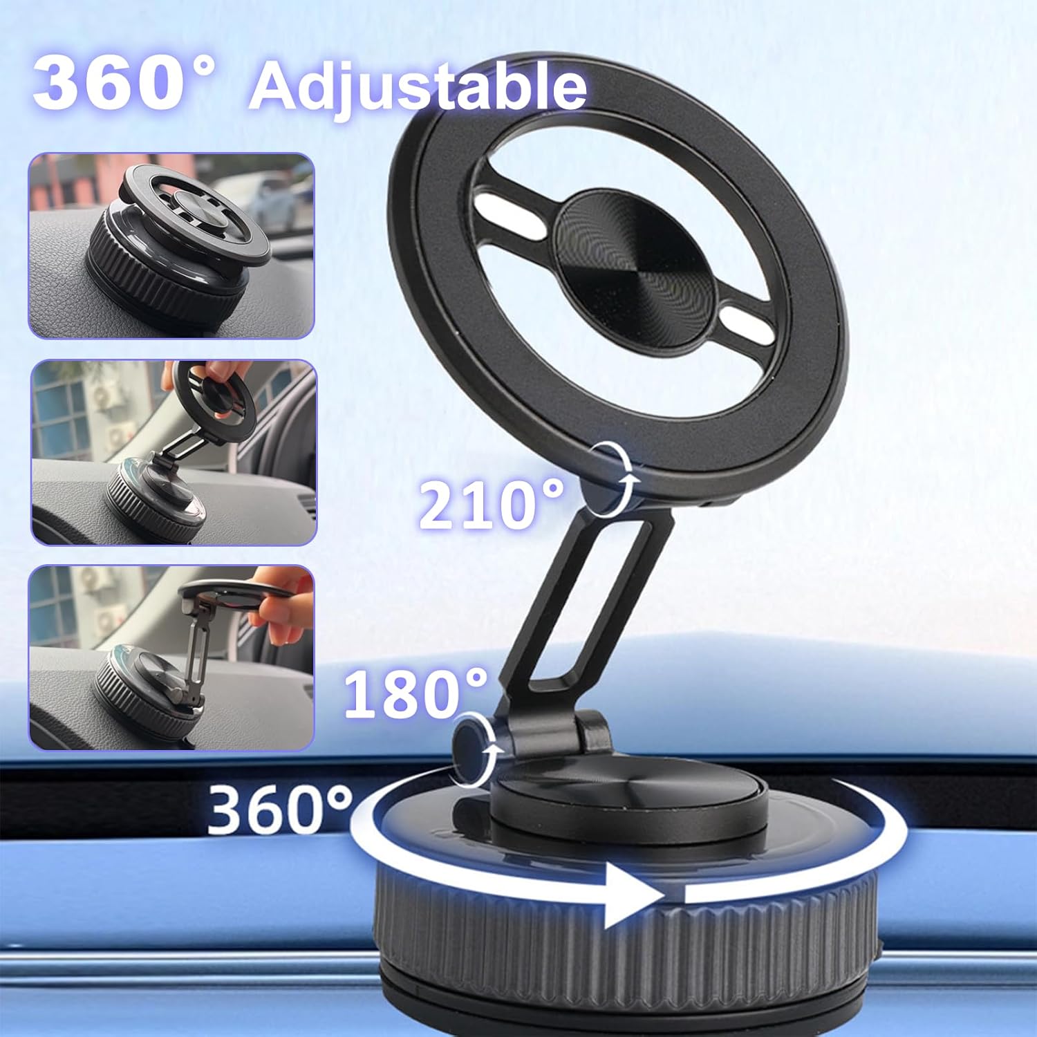Vacuum Magnetic Phone Holder for Car, 360° Ajustable Car Holders for Magsafe,Ultra Strong Suction Cup Phone Mount, Foldable Cell Phone Holders for Car/Gym/Mirror Bracket for iPhone & Android