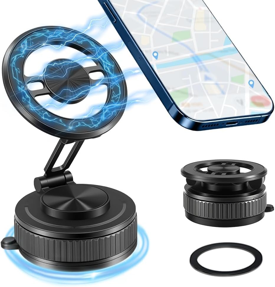 ✅【Ultra Suction Power】: The vacuum magnetic phone holder features a superior nano-gel suction base and a rotating vacuum lock system that boosts grip by 80% with just one twist. Upgraded suction cup phone mount creates a vacuum seal that grips firmly on windshields, dashboards, or any smooth surface – even in extreme temperatures. Vacuum adhesion no residue left, it can be cleaned and regain 99% of its suction power for lasting stability.