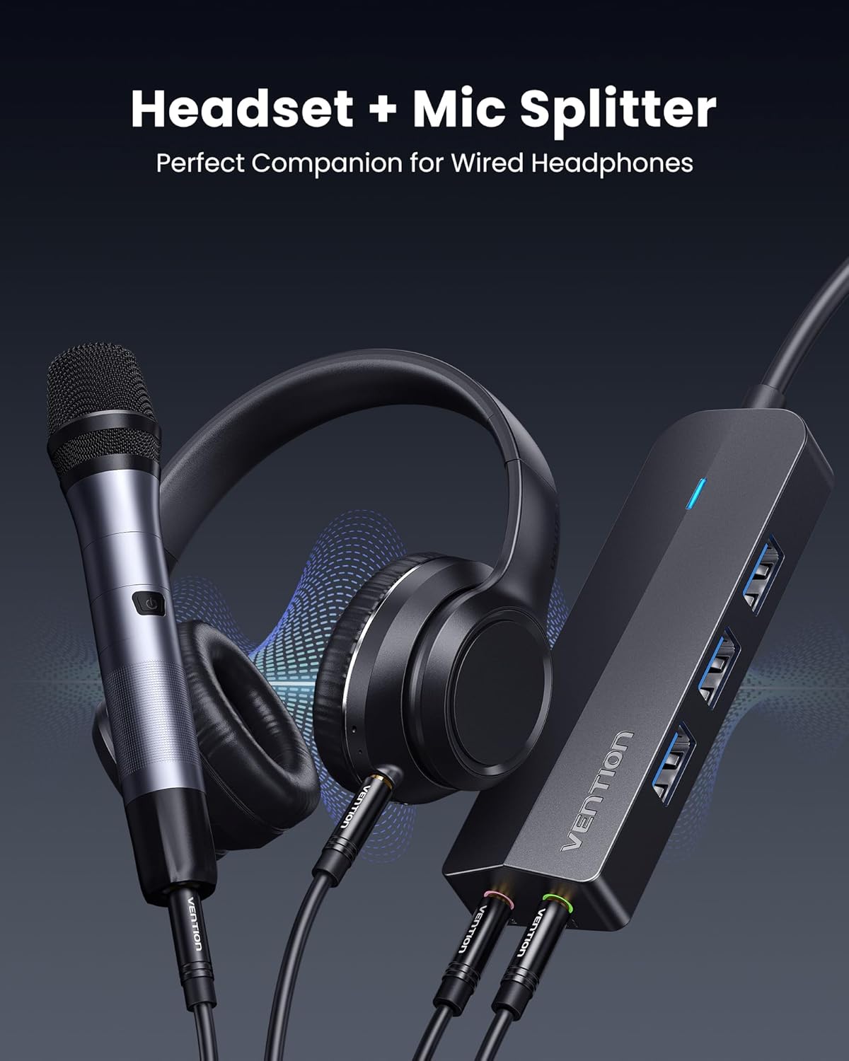 Versatile connectivity: VENTION USB 3.0 Hub 3-Port USB Sound Card is a 2-in-1 external stereo audio adapter that allows you to connect multiple USB devices and enjoy high-quality audio through the 3.5mm jack
