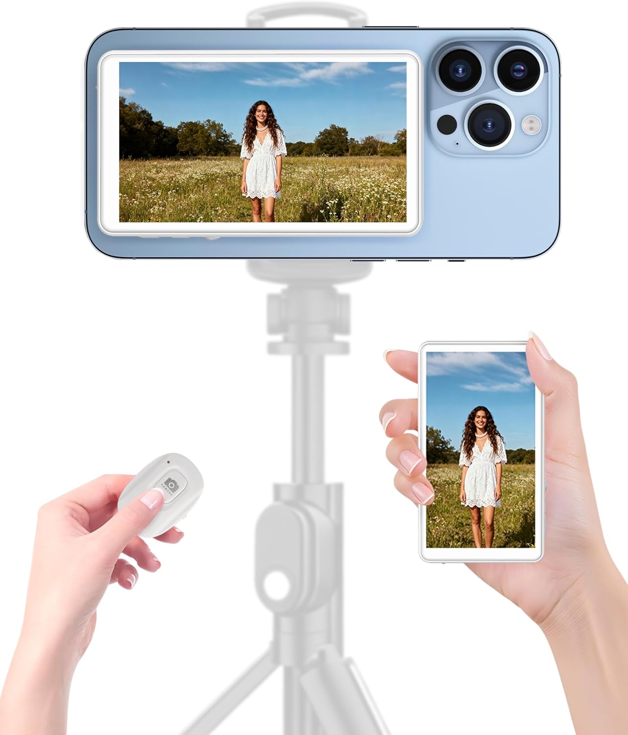 Vlog Selfie Monitor Screen for iphone, Real-Time Rear Camera Image Transmission, 1080P HD Display For Live Streaming, Bluetooth Remote Control, Magnetic Selfie Screen, Ideal For Content Creators