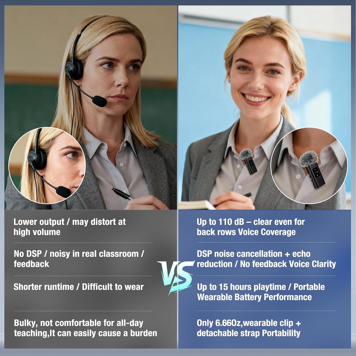 【Advanced DSP Chip for Crystal-Clear Sound Without Howling】Say goodbye to painful screeching and distracting feedback! Our advanced DSP digital chip intelligently processes your voice and suppresses howling before it can even happen. This ensures a smooth, professional sound quality that protects your ears and your students’ focus, making it the most reliable wireless voice amplifier for teachers on the market