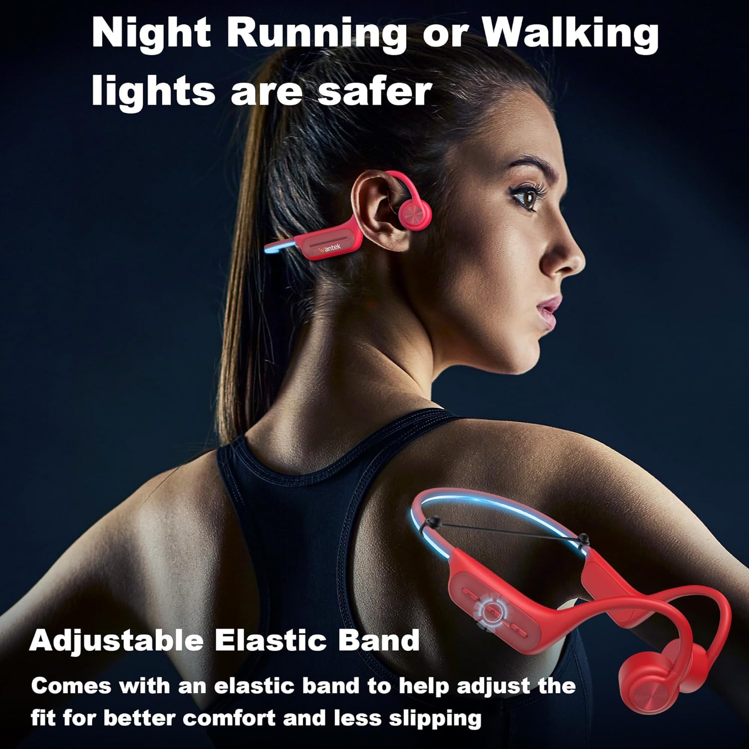 Wantek Open Ear Headphones,Bone Conduction Bluetooth Headphones with Built-in 32GB MP3 Player,IP68 Waterproof Swimming Headphone,8H Playtime for Running,Cycling,Gym,Workout
