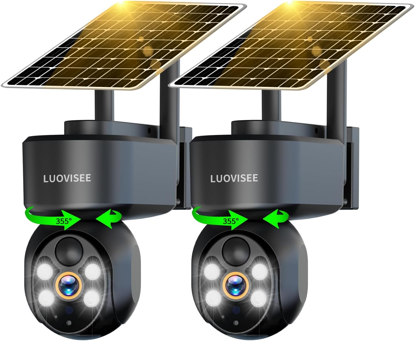 WiFi Security Camera Wireless Outdoor 2 Packs,360° PTZ Solar Camera Outdoor Wireless for Home Security,Work with Alexa,AI Motion Detection,PIR Siren,Cloud & SD Card Storage, 2-Way Audio