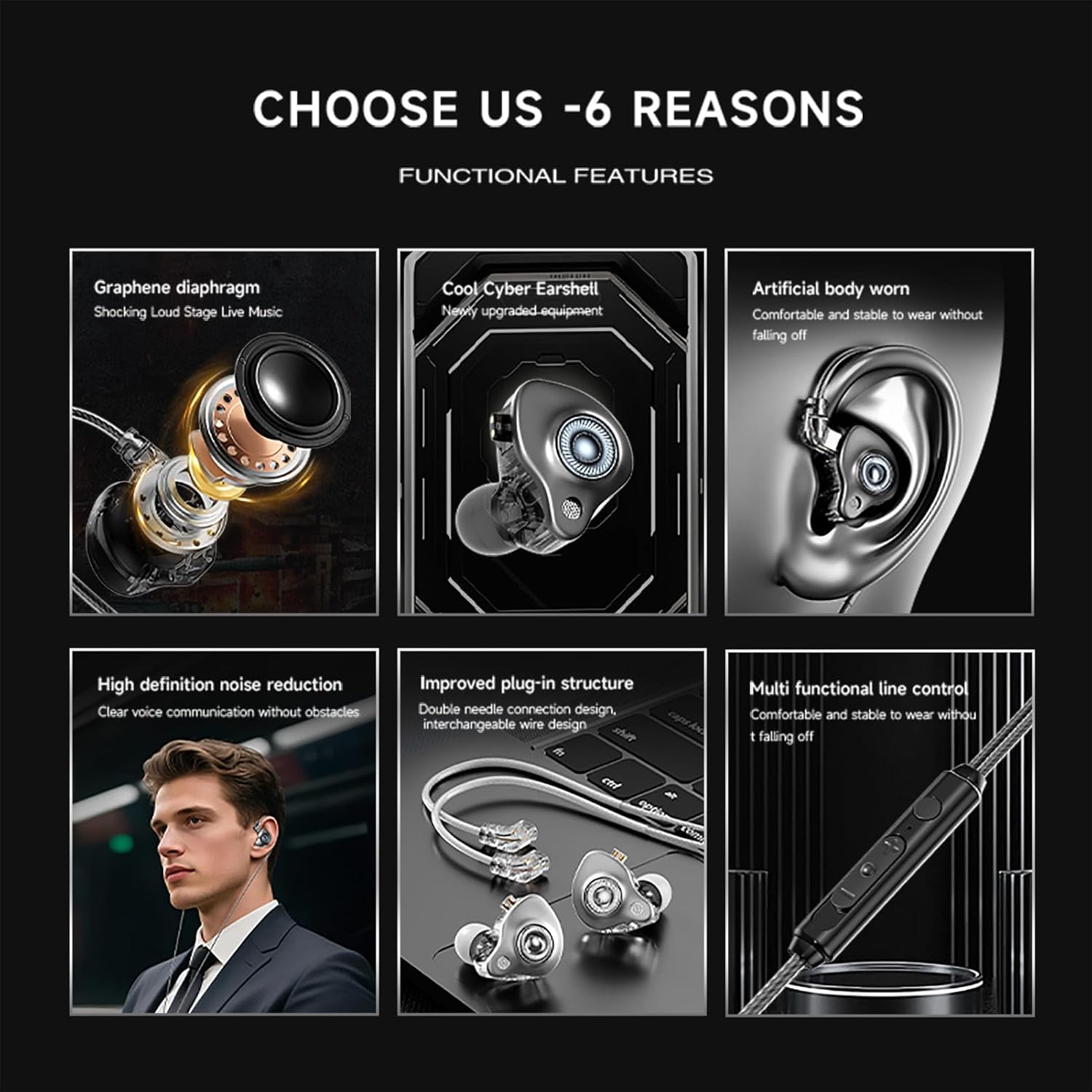 AILKIN Earphones Featuring: 1. Over-Ear Design: Unlike ordinary earbuds that constantly slip or cause ear fatigue, our patented over-ear memory wire hook design contours perfectly to your ear…