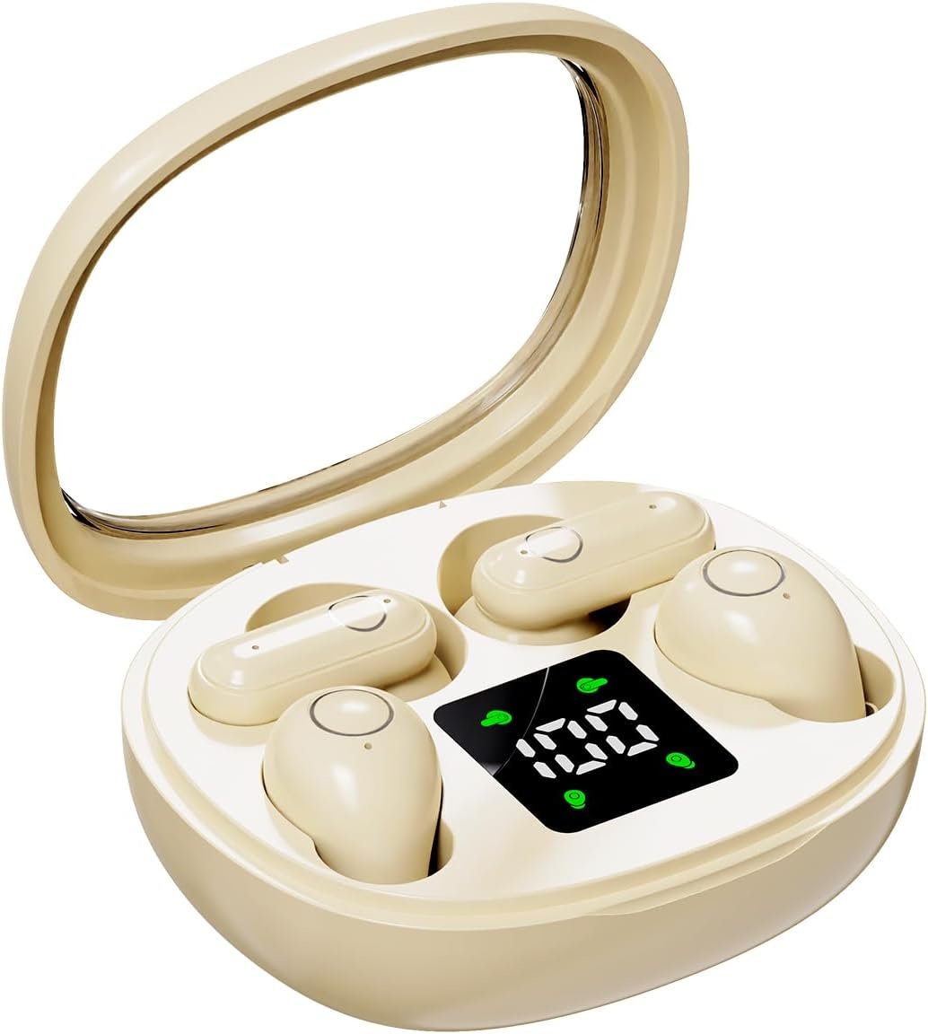 Wireless Bluetooth Headset,Tiny Size Invisible Earbuds,Sleep and Sports Earphones Set, 2 Pairs, Mini and Short Handle Design,for Work Sport Sleeping   (Khaki)