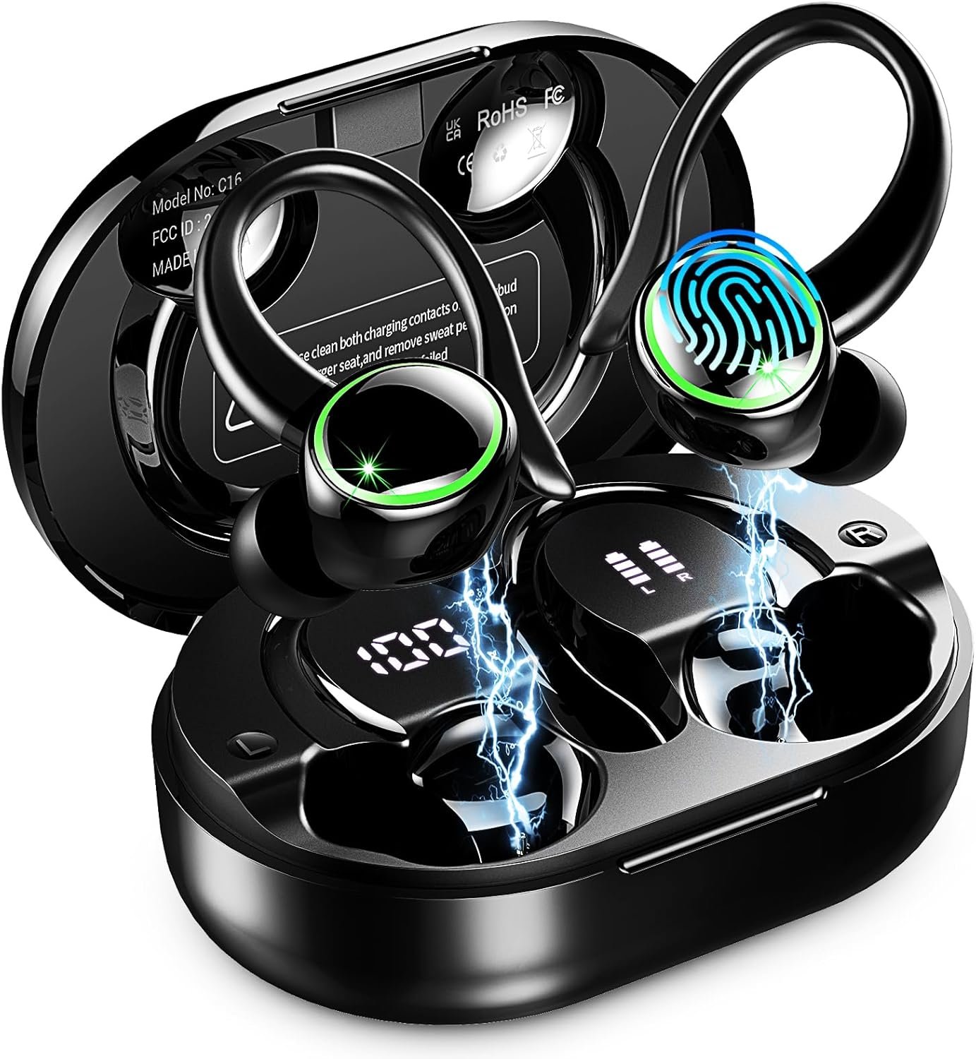 Wireless Earbuds, 2026 Bluetooth 5.4 Headphones Sports, 50 Playback Over-Ear buds with ENC Noise Cancelling Mics, Deep Bass Fitness Earphones Gym Running Workout, IP7 Headset with Earhook, LED Display