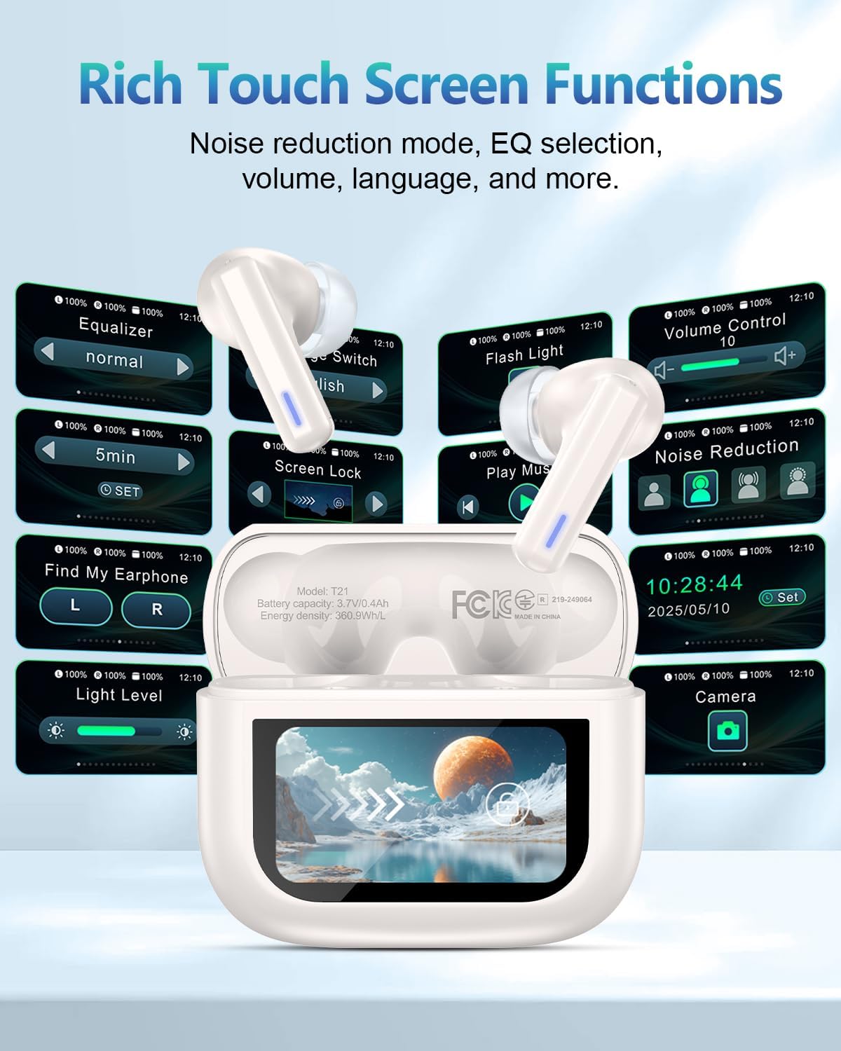Your Portable Control Hub with Smart Touchscreen: Never fumble for your phone again. The revolutionary charging case features a responsive touchscreen that puts over 10 smart controls at your fingertips. Effortlessly skip tracks, adjust volume, locate misplaced earbuds, or trigger your phone’s camera remotely—all from the case itself. It’s the ultimate command center for a smarter, more convenient life.