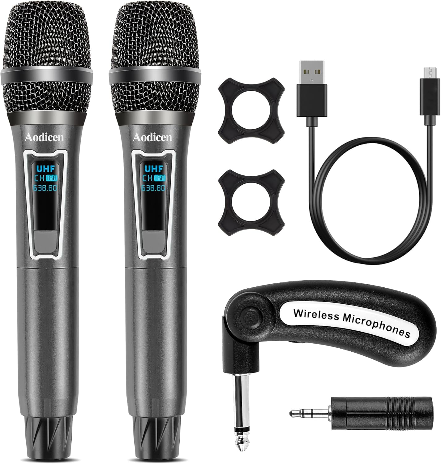 Wireless Karaoke Microphone, No Delay Handheld Microphone System with Rechargeable Receiver, Suitable for Singing, Teaching, Church, Weddings, and DJ Events (Black, 2 Microphone)