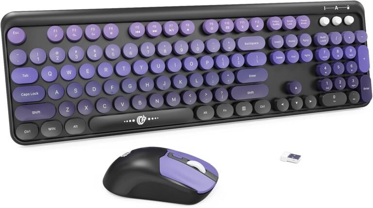 Wireless Keyboard and Mouse Combo, 104 Round Keys Cute Colorful Keyboard and Mouse with Retro
